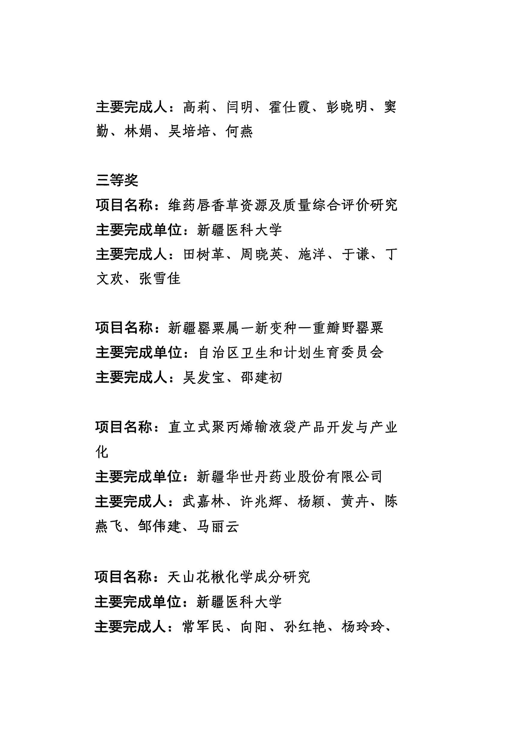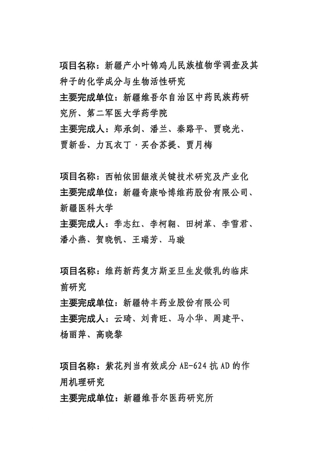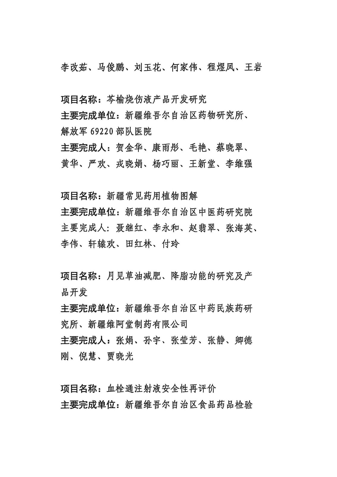 关于奖励第四届新疆药学科技奖获奖科技成果的决定
