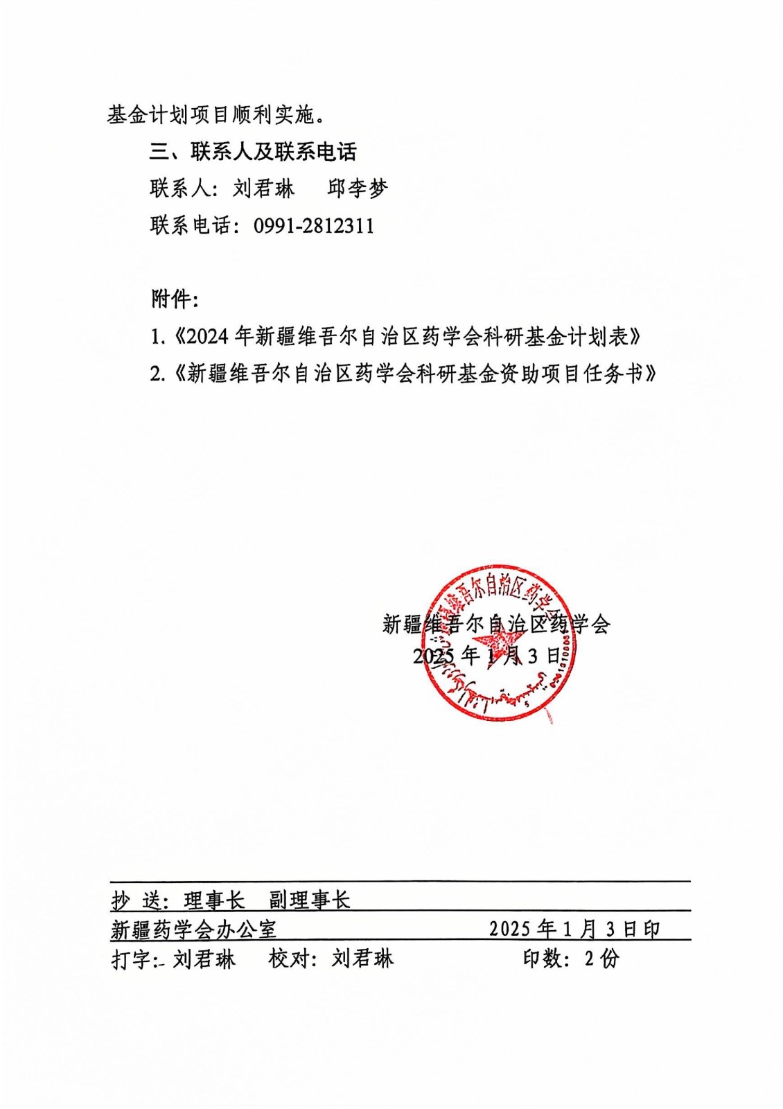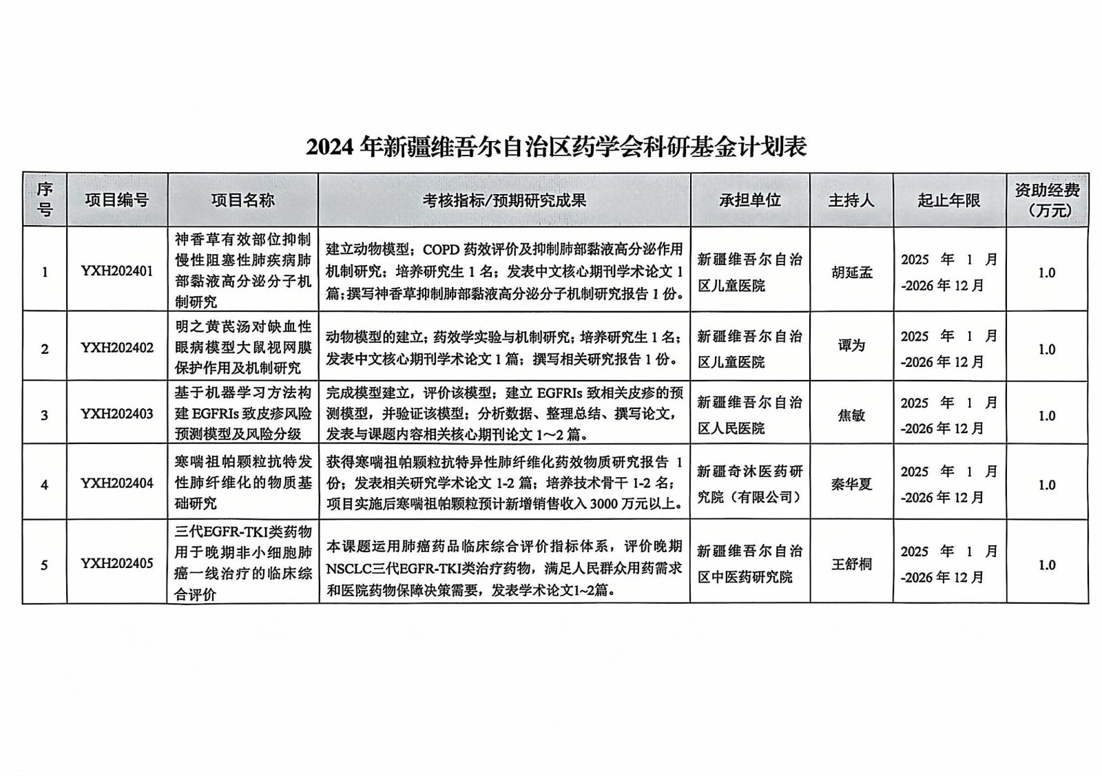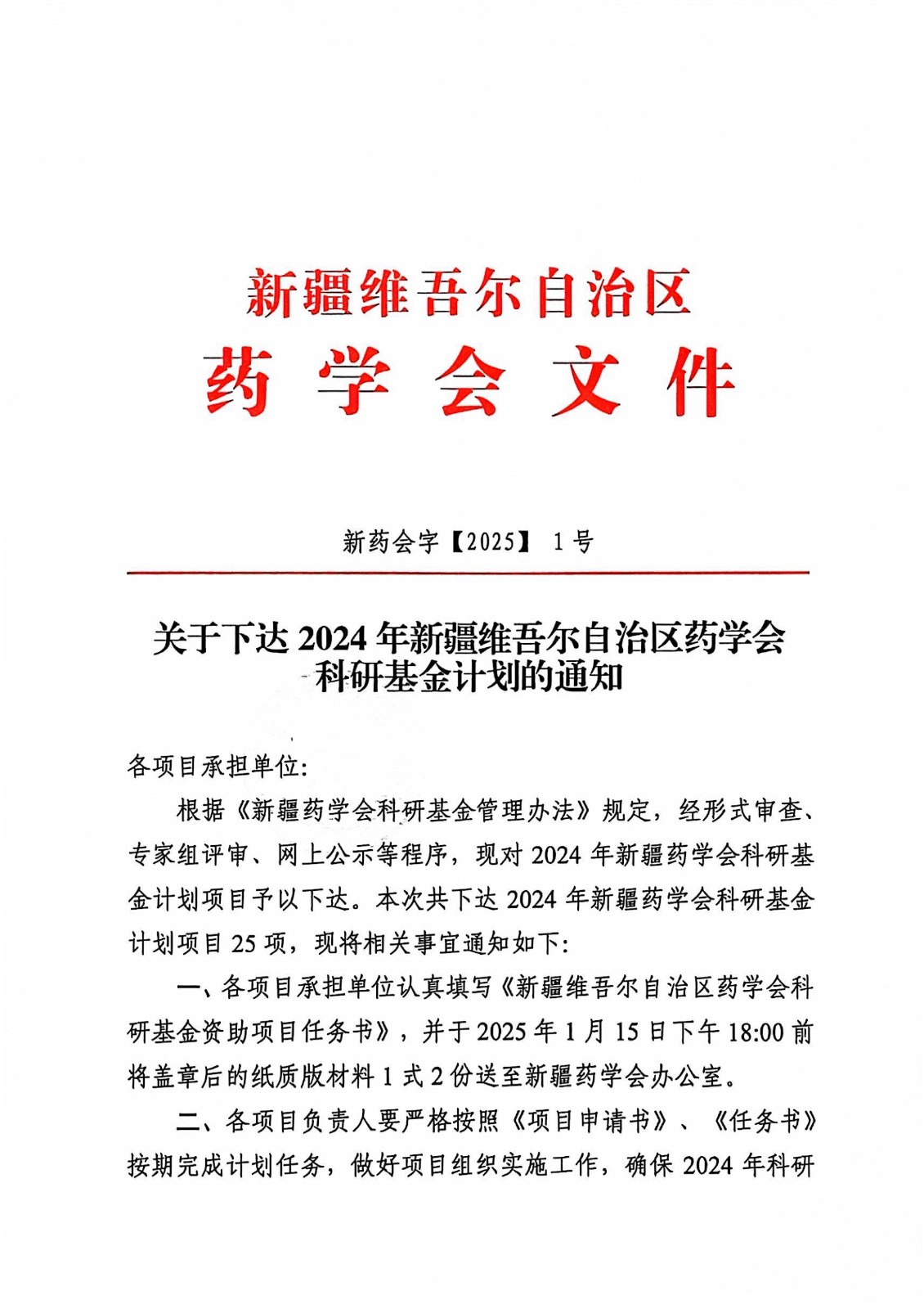 关于下达2024年新疆维吾尔自治区药学会科研基金计划的通知
