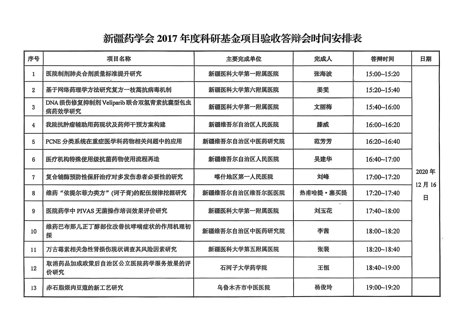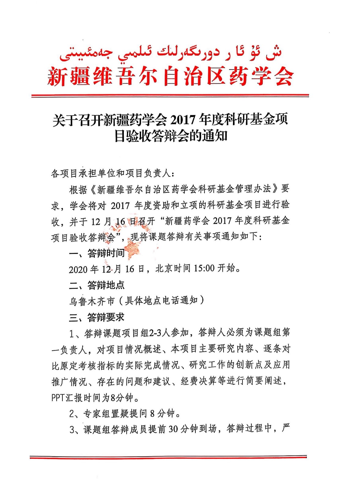 关于召开新疆药学会2017年度科研基金项目验收答辩会的通知