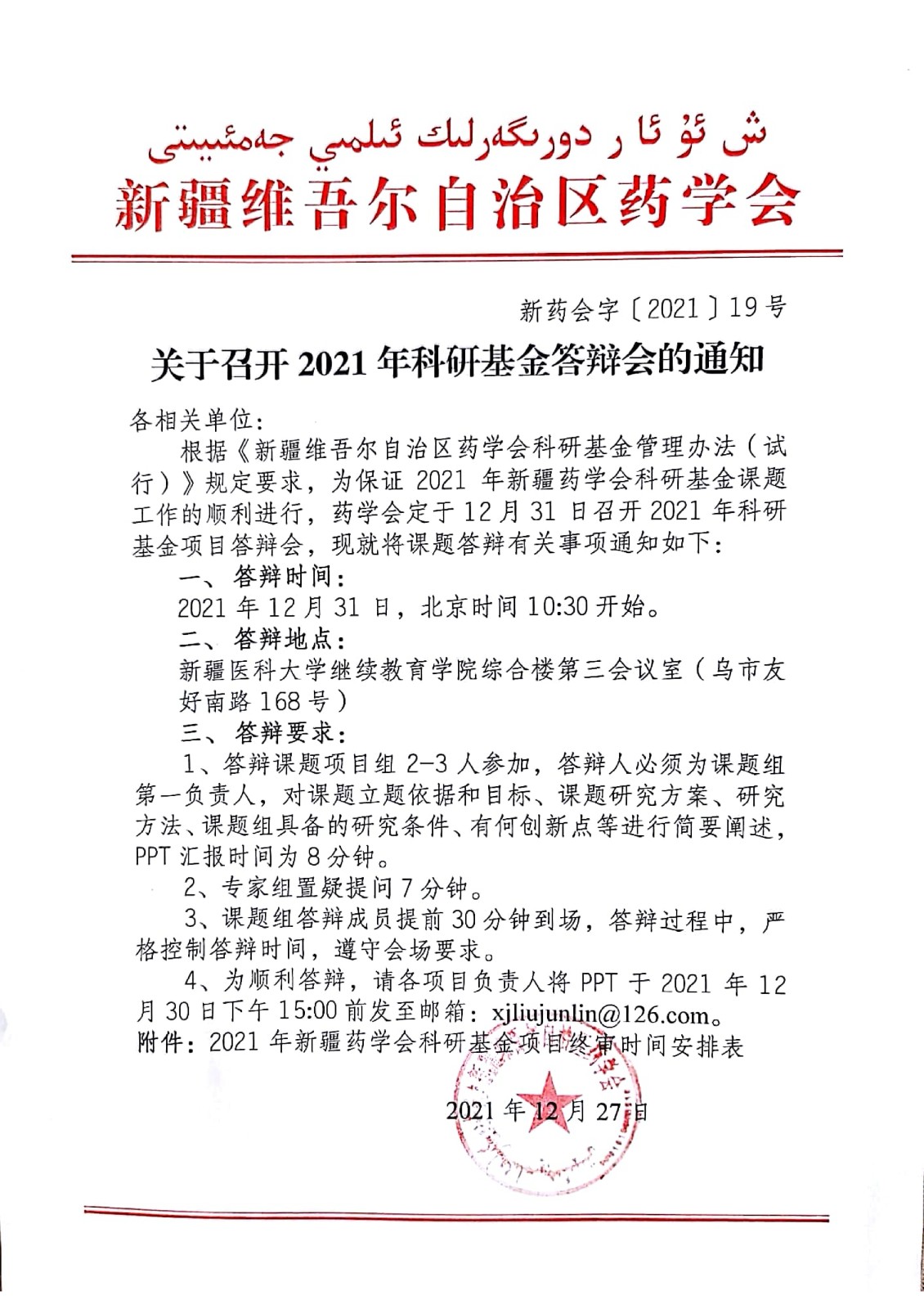 关于召开2021年科研基金答辩会的通知