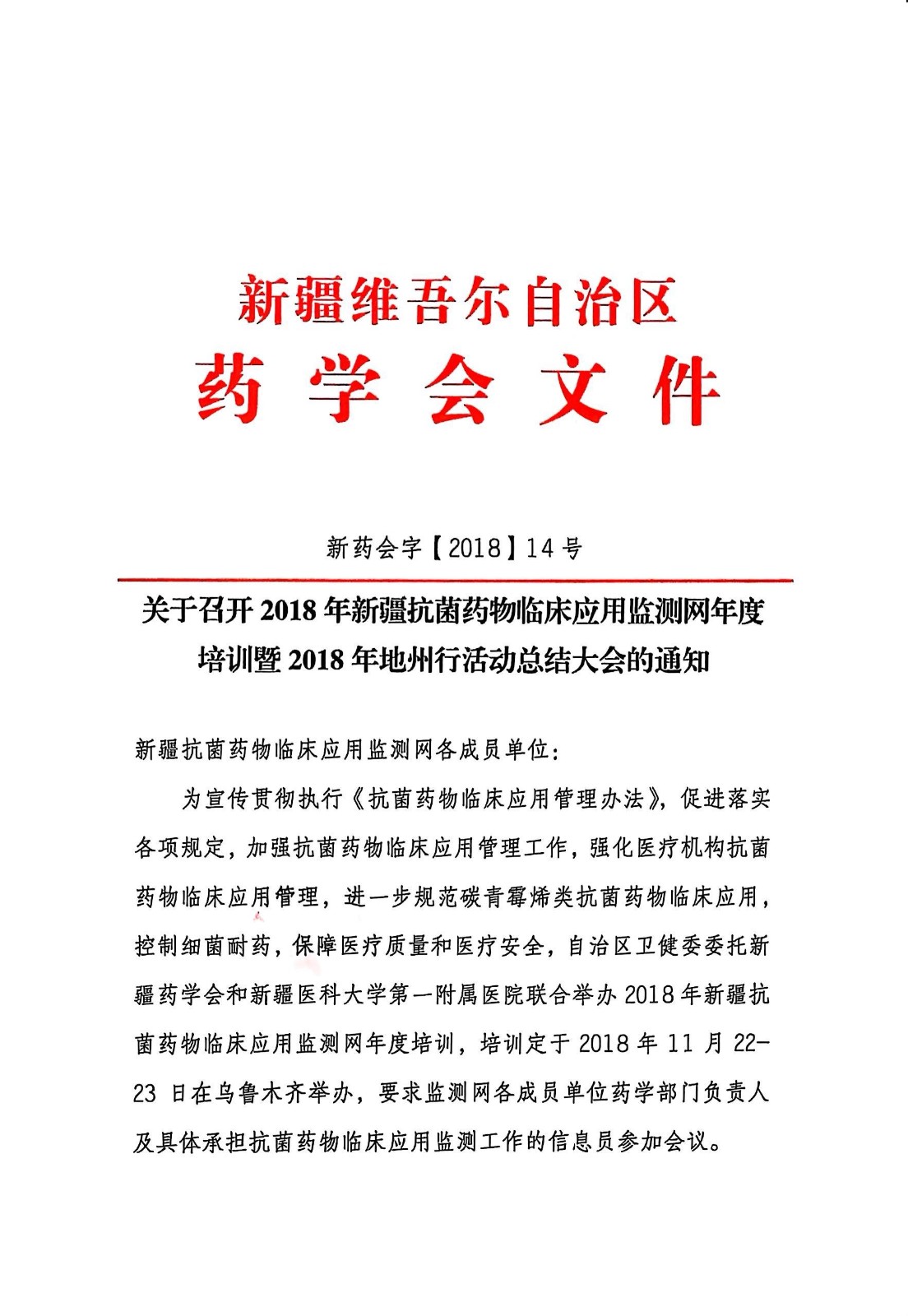 关于召开2018年新疆抗菌药物临床应用监测网年度培训暨2018年地州行总结大会的通知