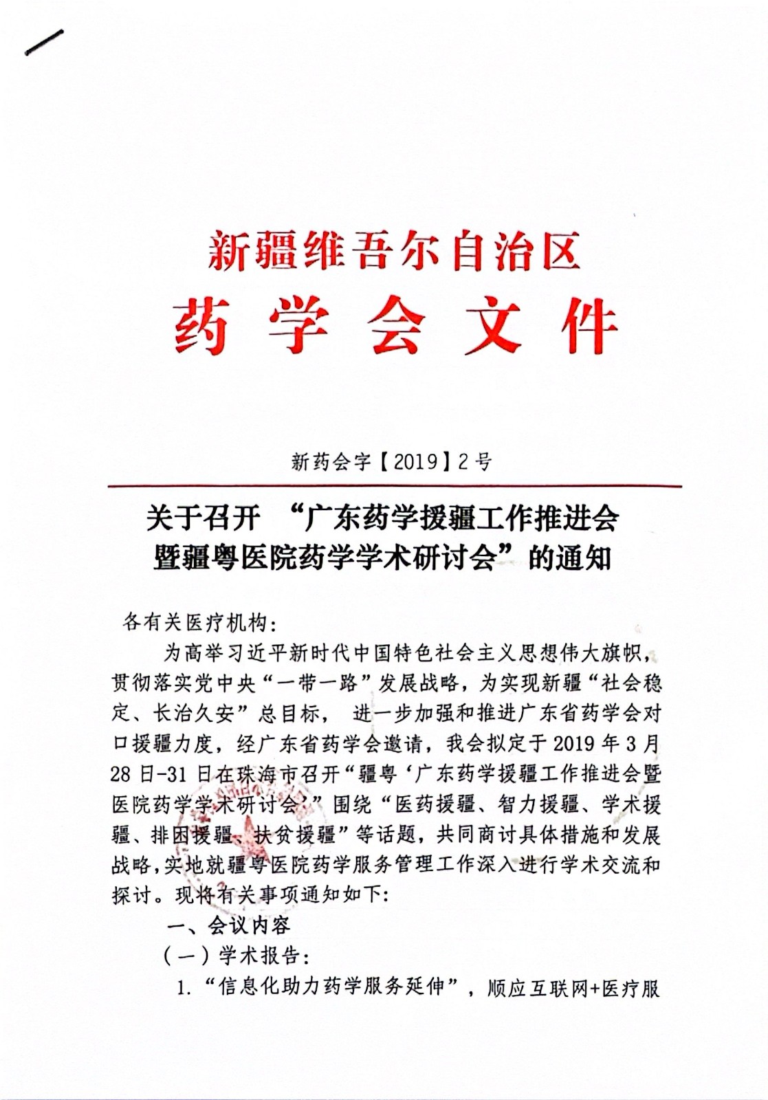 关于召开“广东药学援疆工作推进会暨疆粤医院药学学术研讨会”的通知