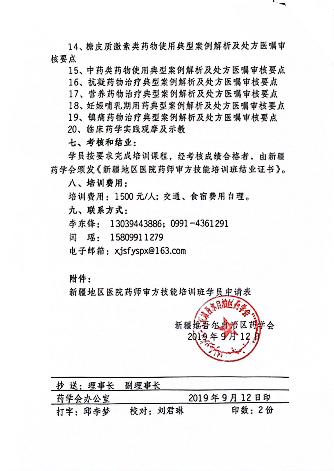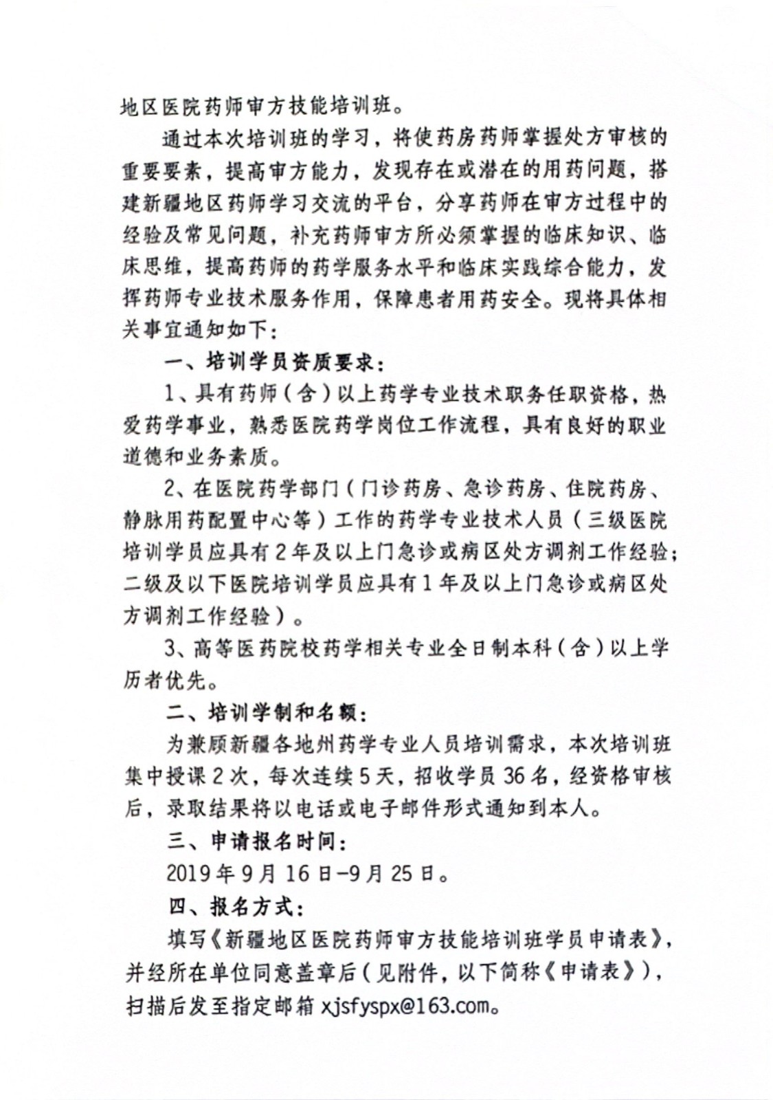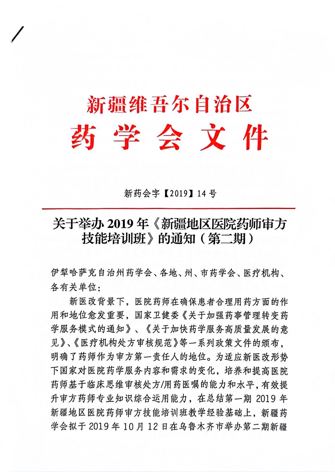 关于举办2019年《新疆地区医院药师审方技能培训班》的通知(第二期)