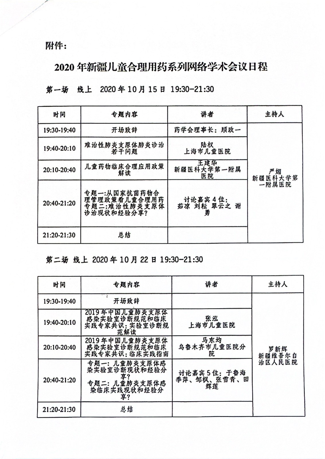 关于组织开展“2020年新疆儿童合理用药系列网络学术活动”的通知