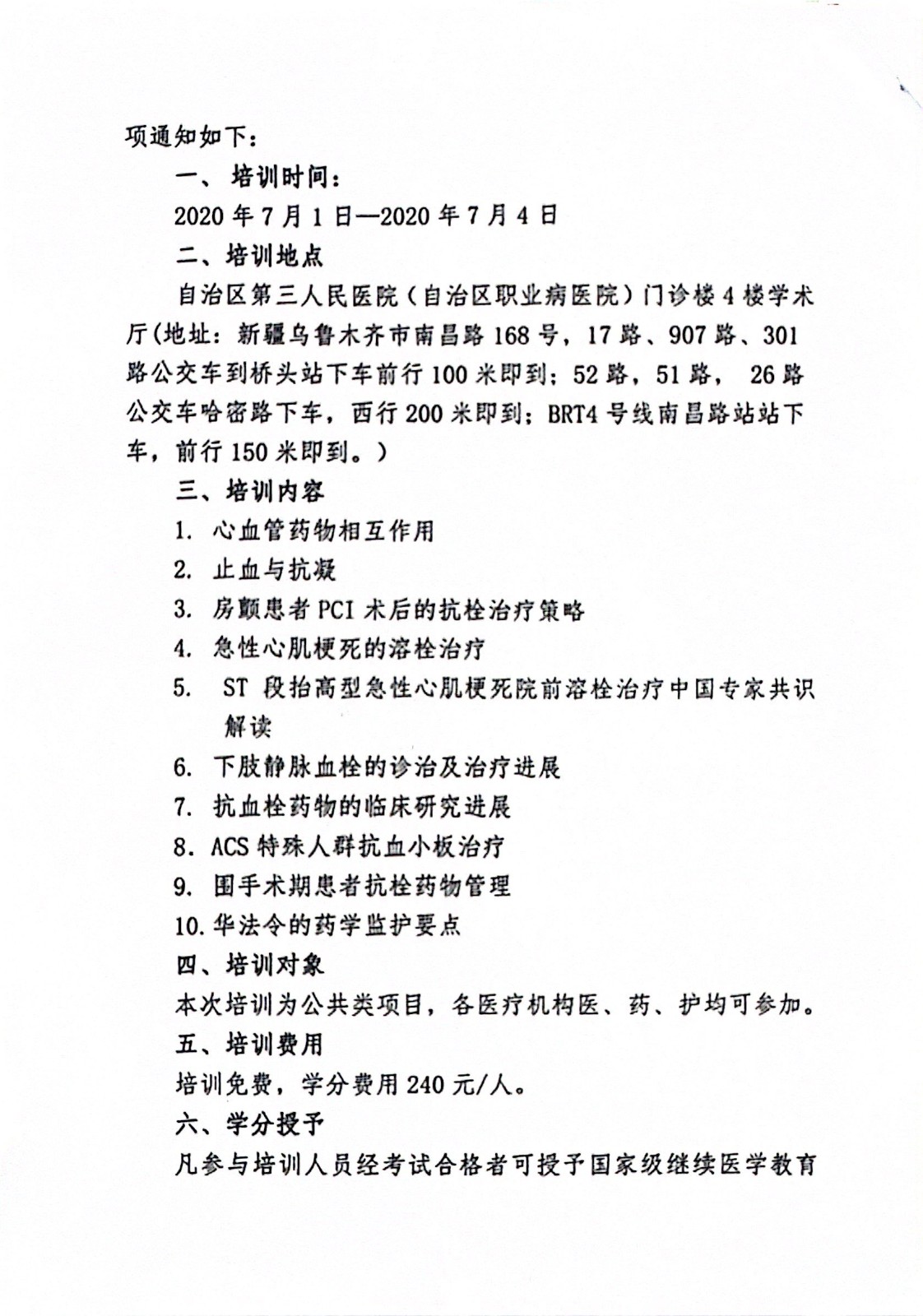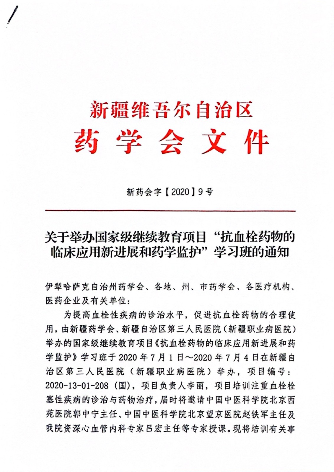 关于举办国家级继续教育项目“抗血栓药物的临床应用新进展和药学监护”学习班的通知
