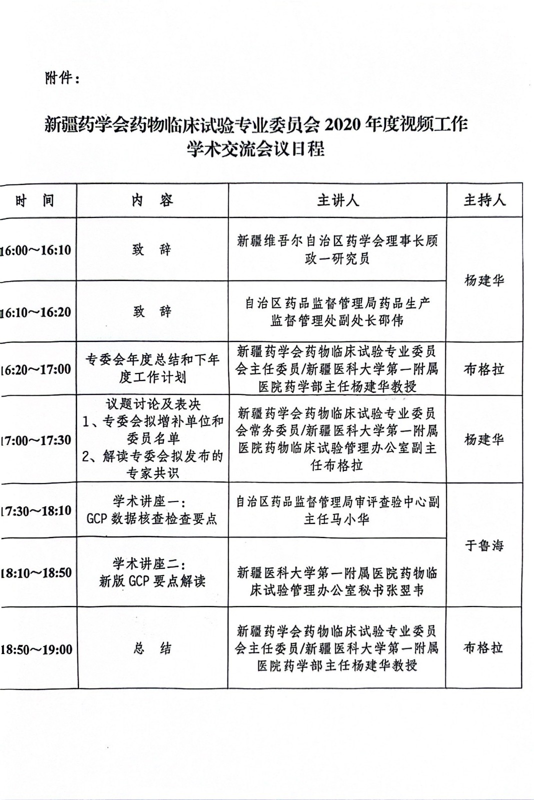 关于召开新疆药学会药物临床试验专业委员会2020年度学术交流会议的通知