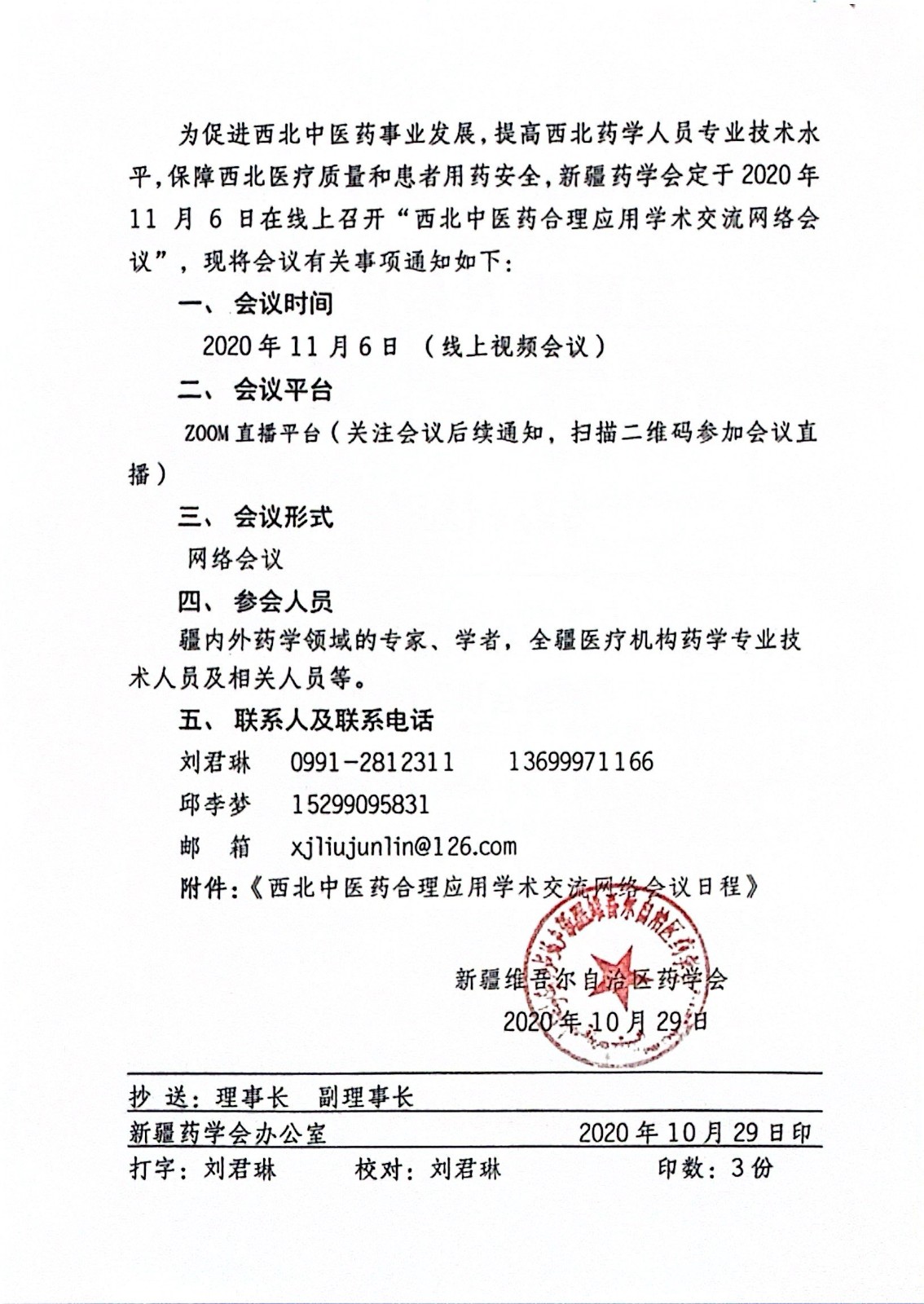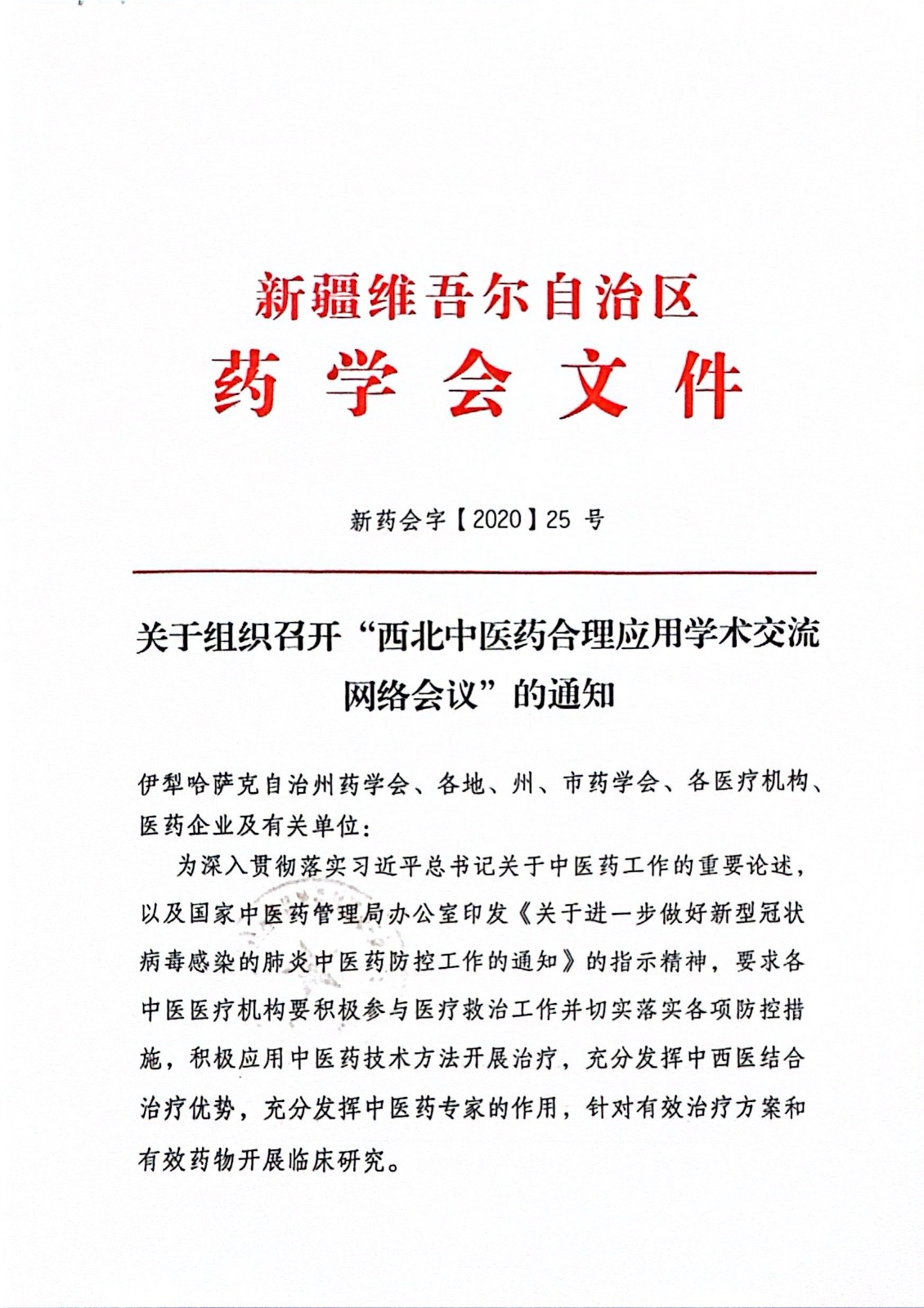 关于组织召开“西北中医药合理应用学术交流网络会议”的通知