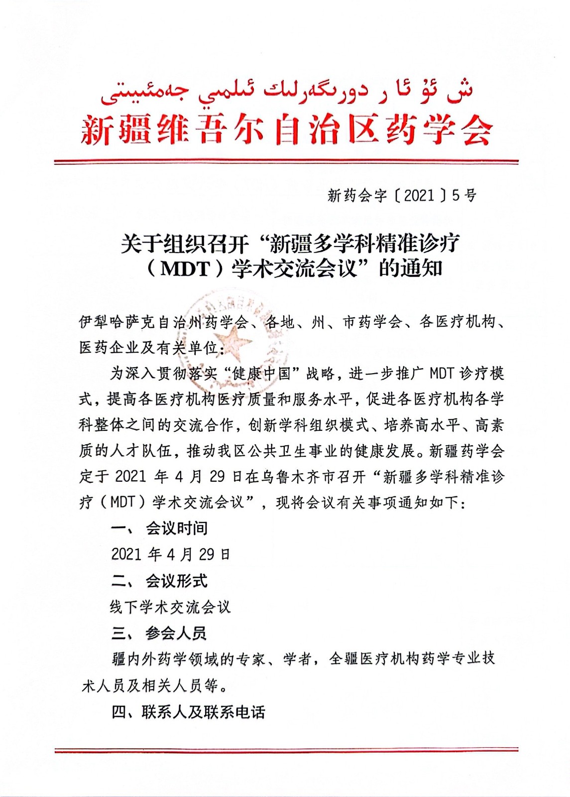关于组织召开“新疆多学科精准诊疗(MDT)学术交流会议的通知