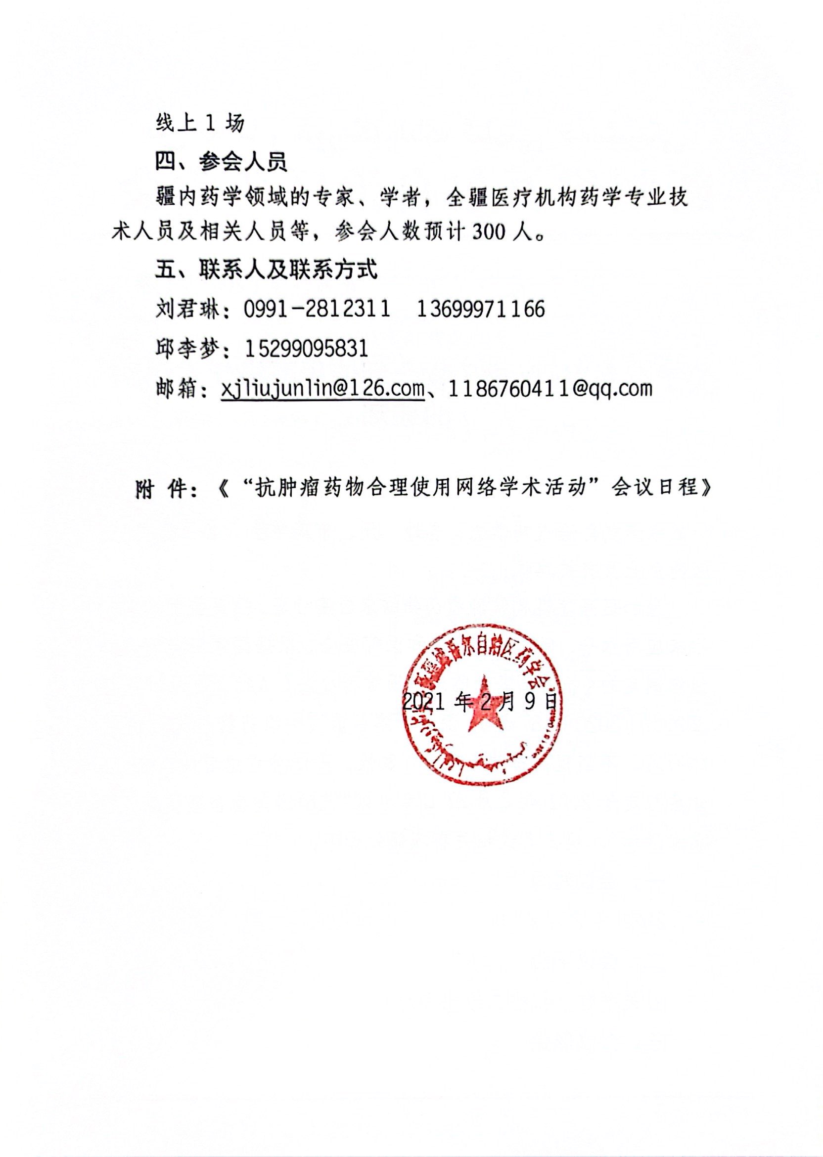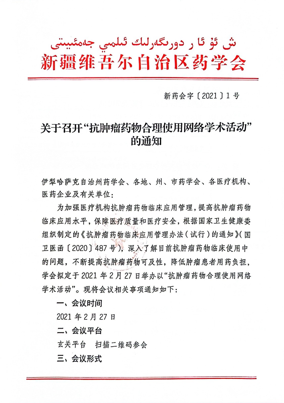 关于召开“抗肿瘤药物合理使用网络学术活动”的通知
