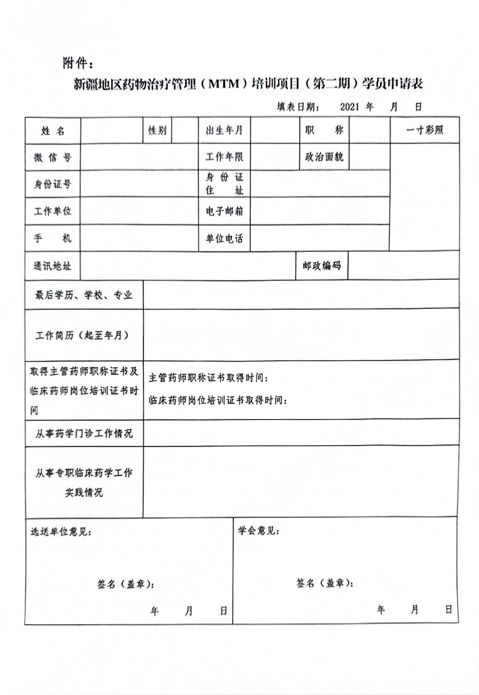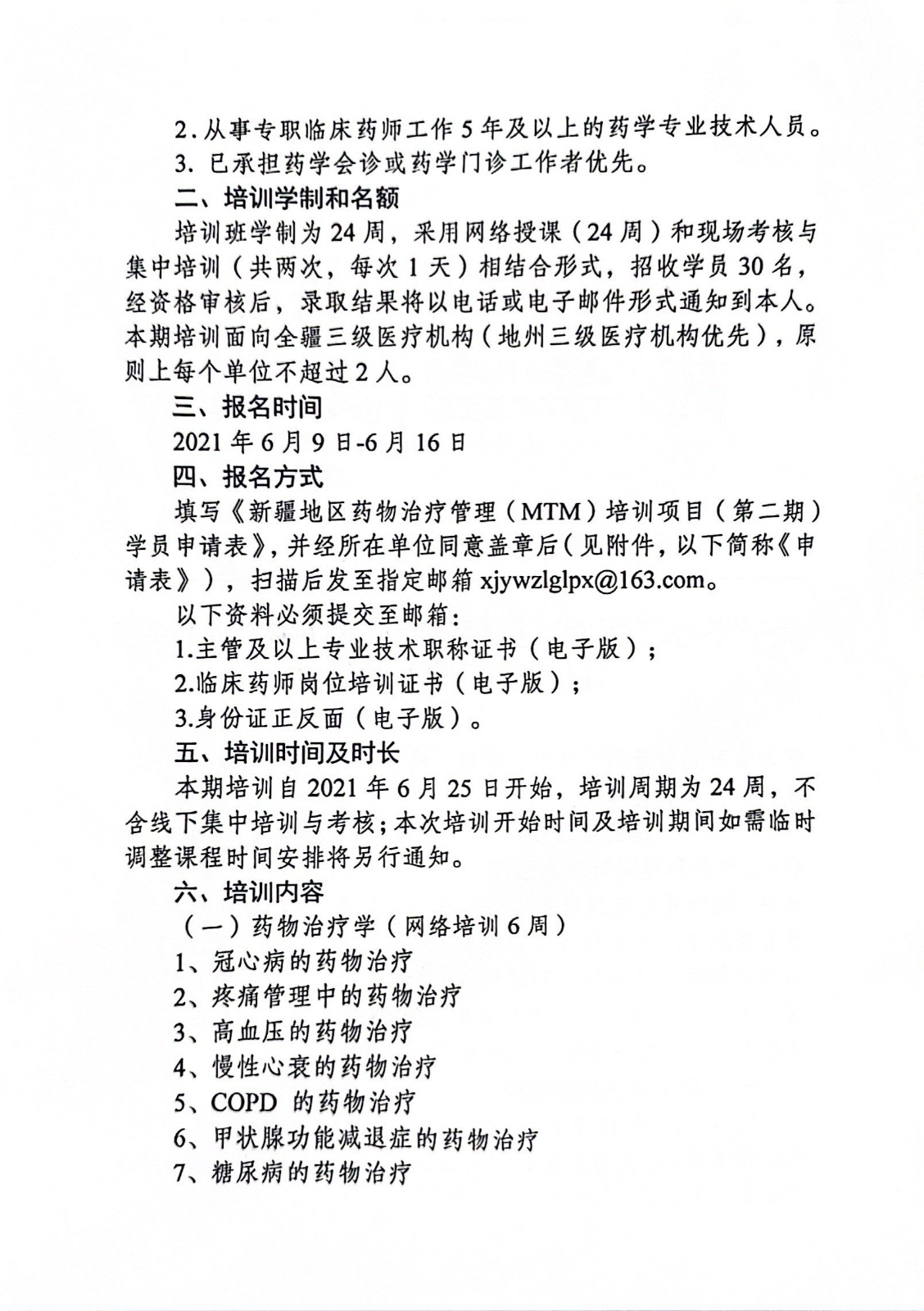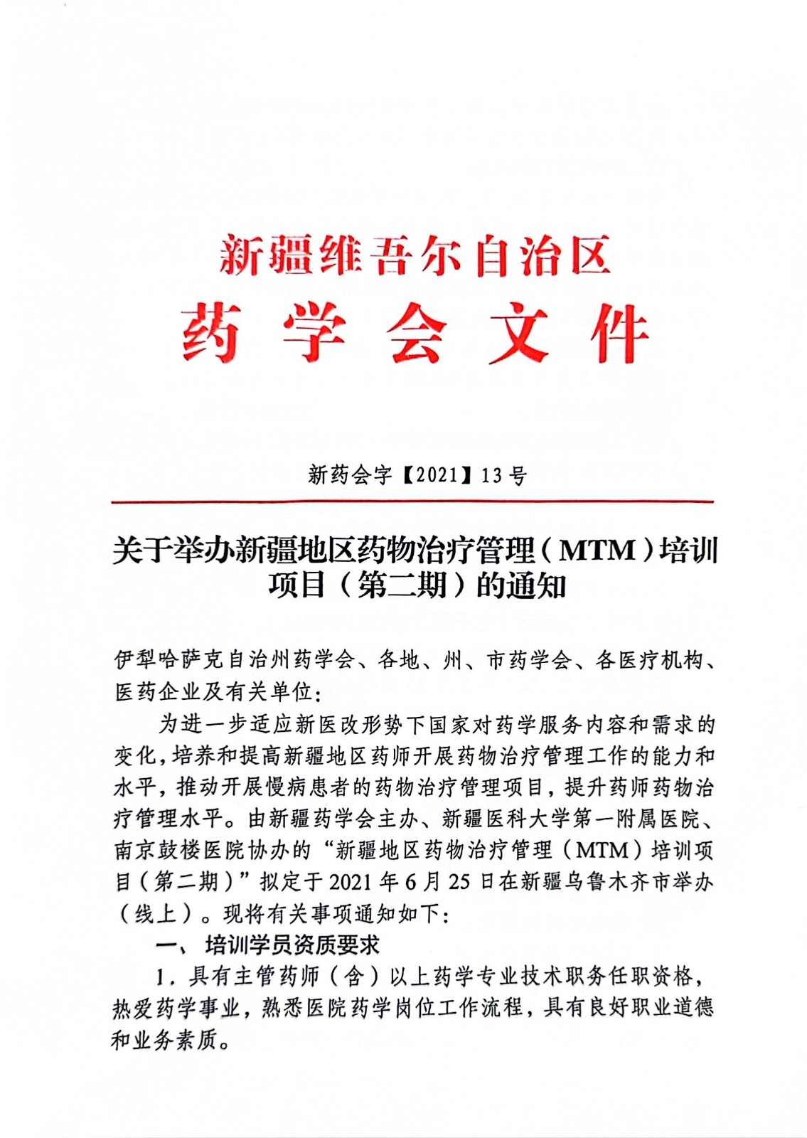 关于举办新疆地区药物治疗管理(MTM)培训项目(第二期)的通知