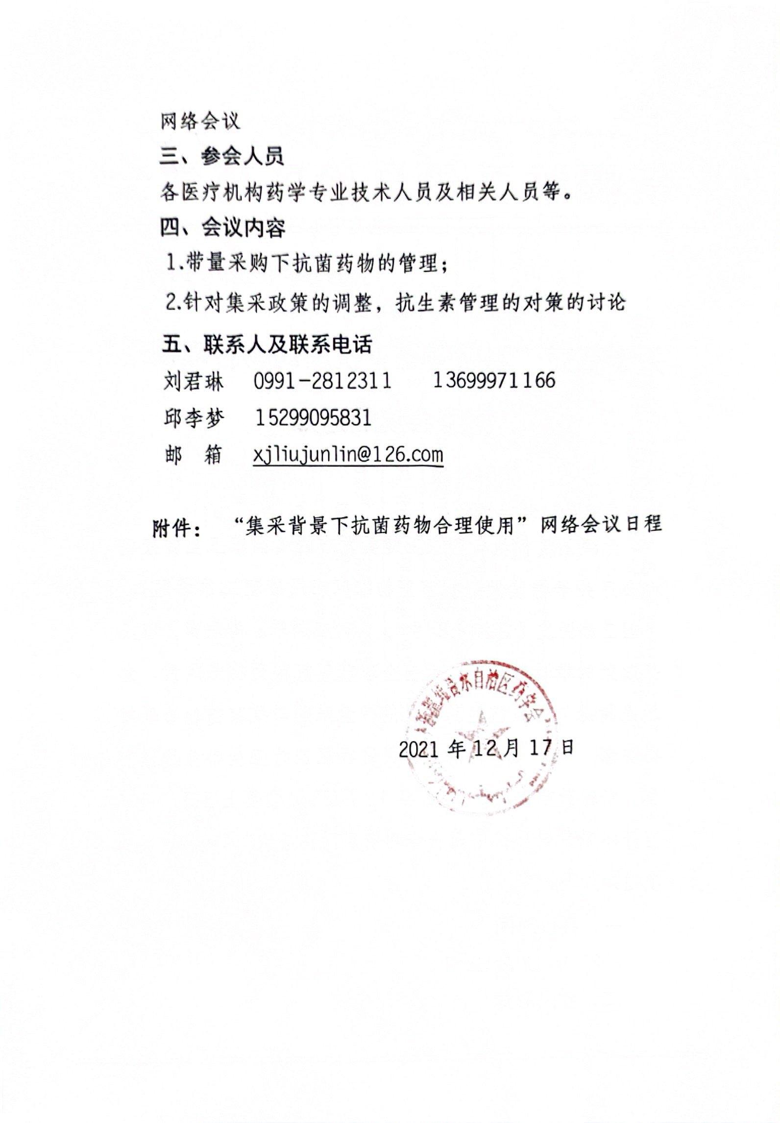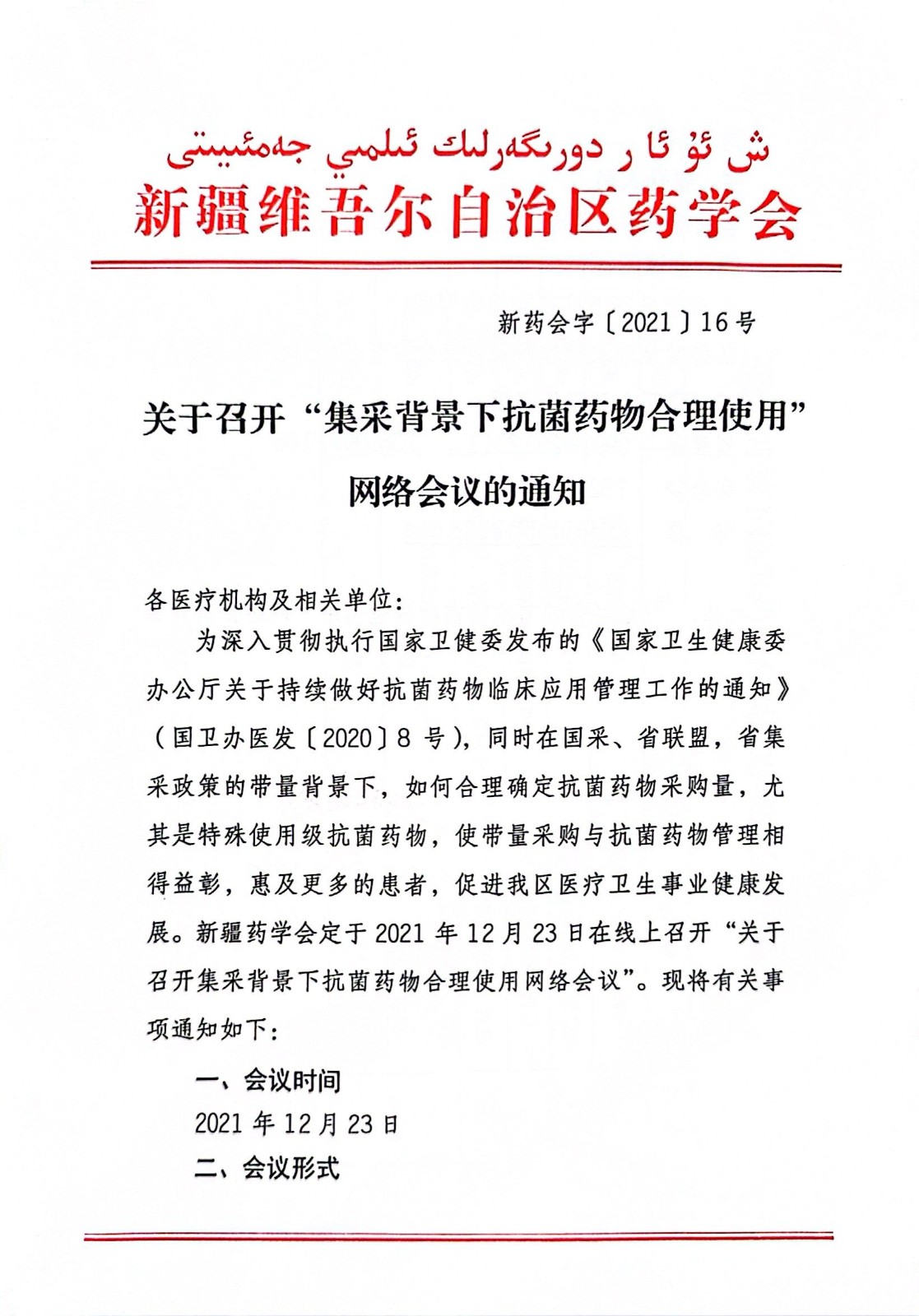 关于召开“集采背景下抗菌药物合理使用”网络会议的通知