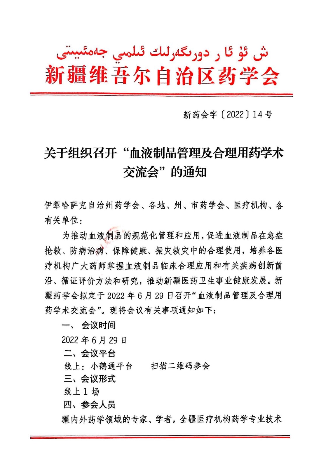 关于组织召开“血液制品管理及合理用药学术交流会”的通知
