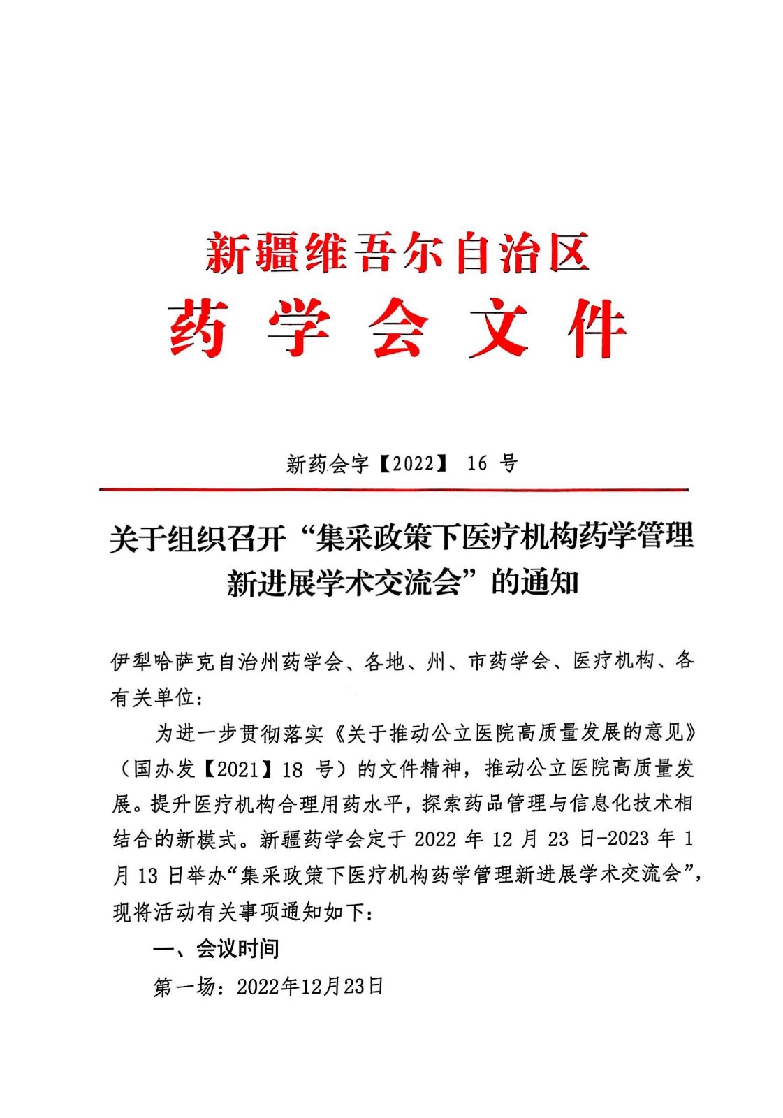 关于组织召开“集采政策下医疗机构药学管理新进展学术交流会”的通知