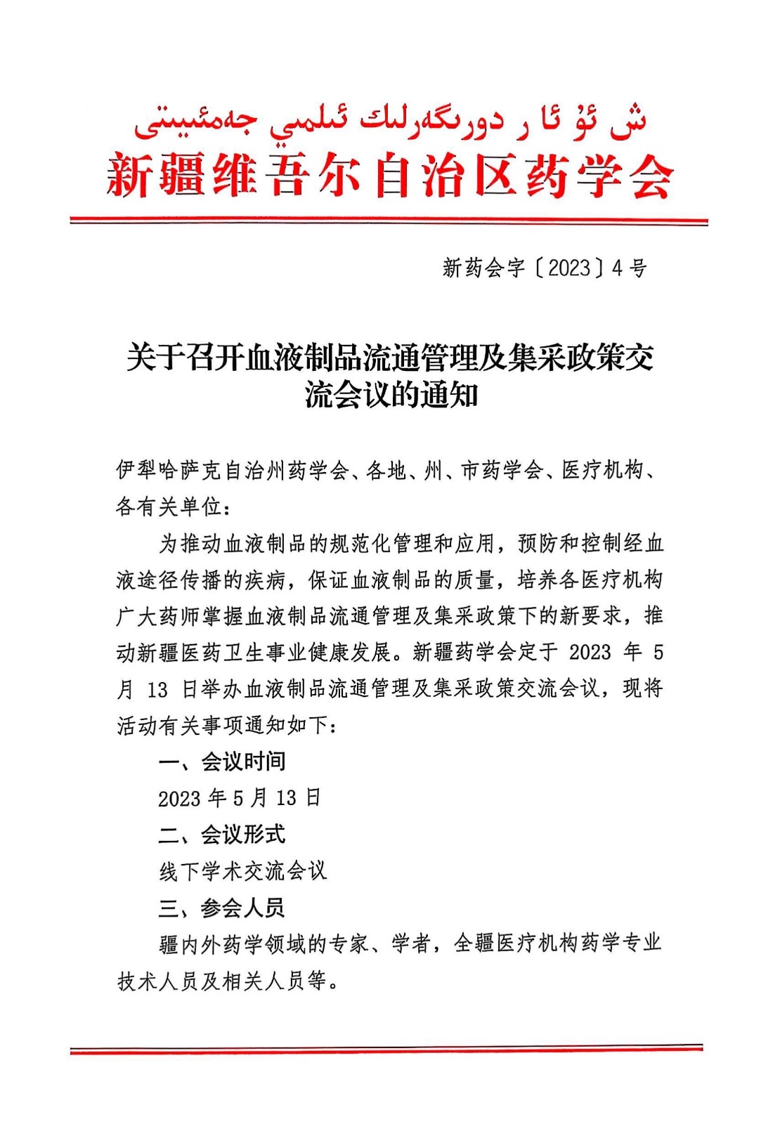 关于召开血液制品流通管理及集采政策交流会议的通知