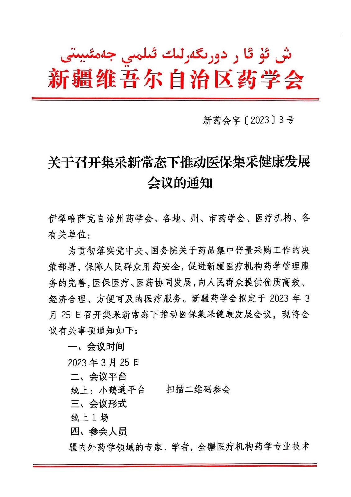 关于召开集采新常态下推动医保集采健康发展会议的通知