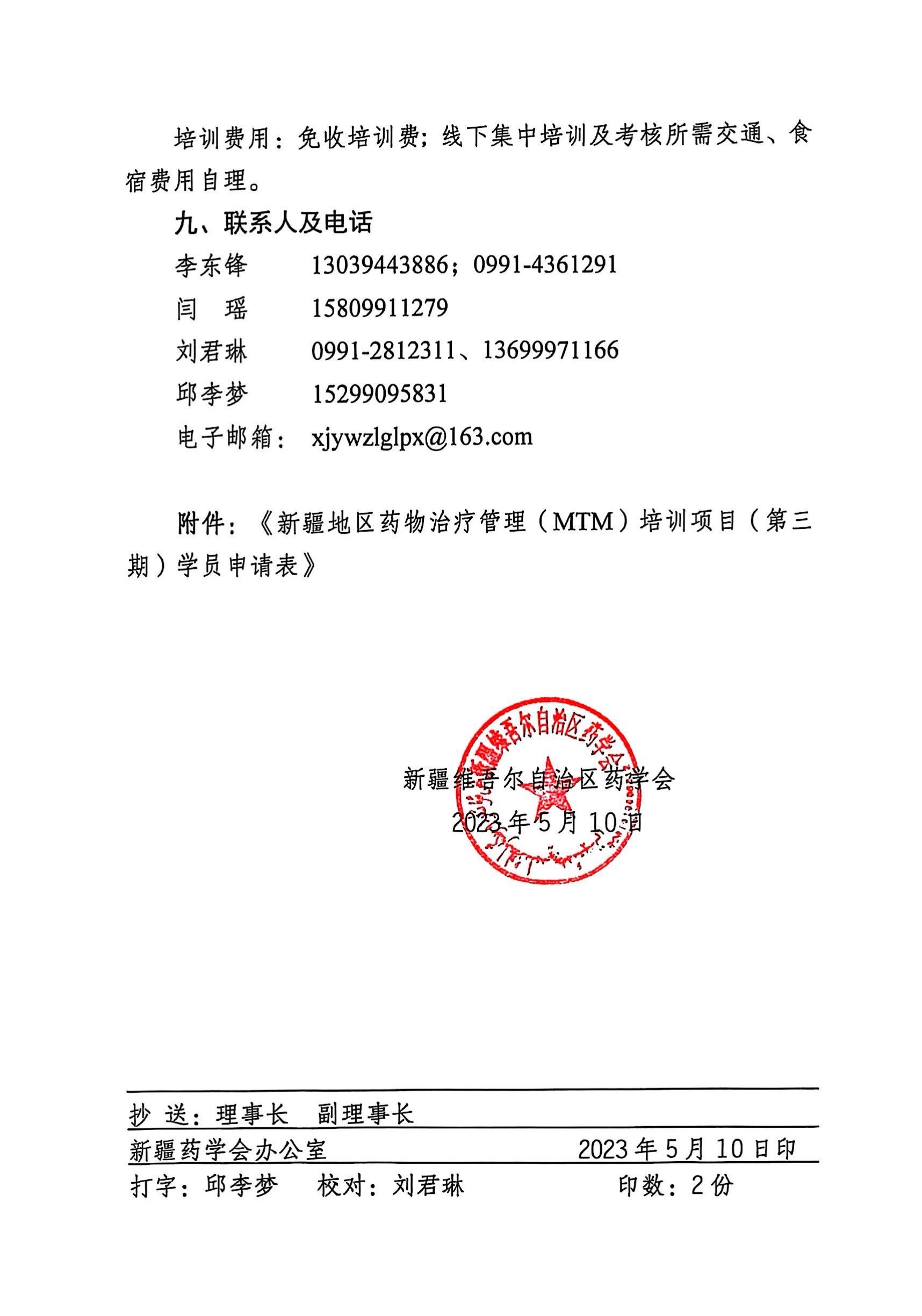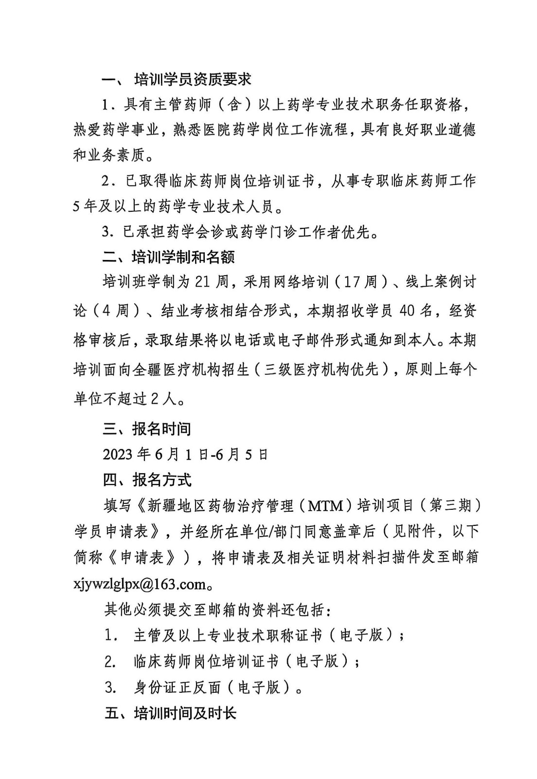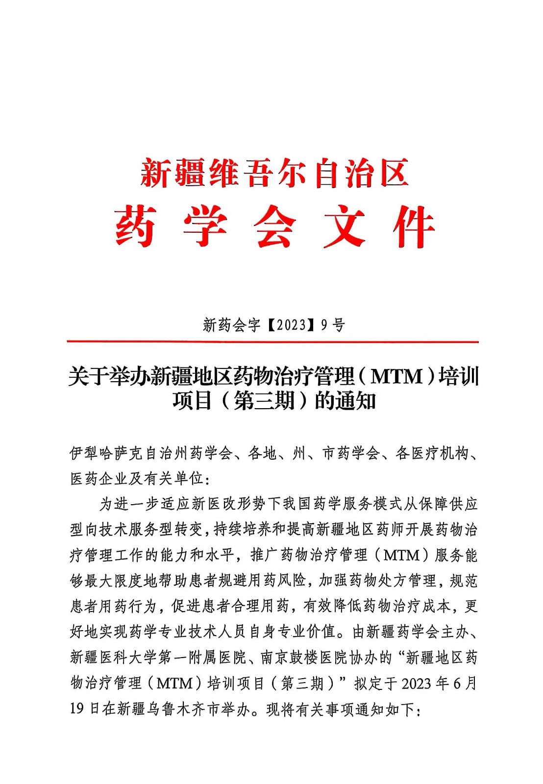 关于举办新疆地区药物治疗管理(MTM)培训项目(第三期)的通知