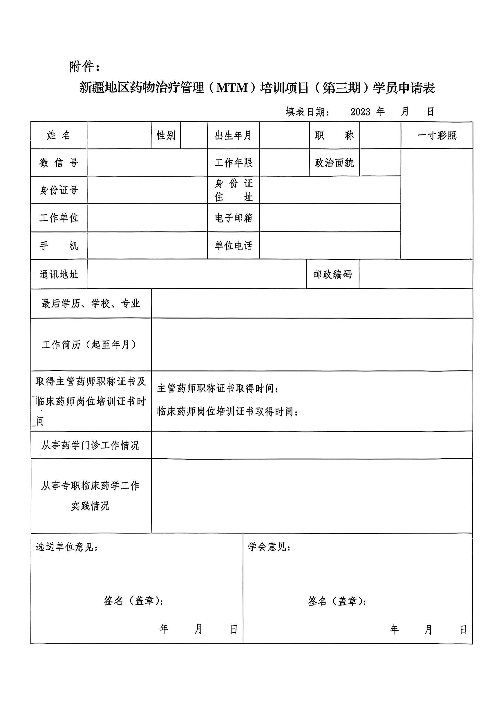 附件:新疆地区药物治疗管理(MTM)培训项目(第三期)学员申请表.docx