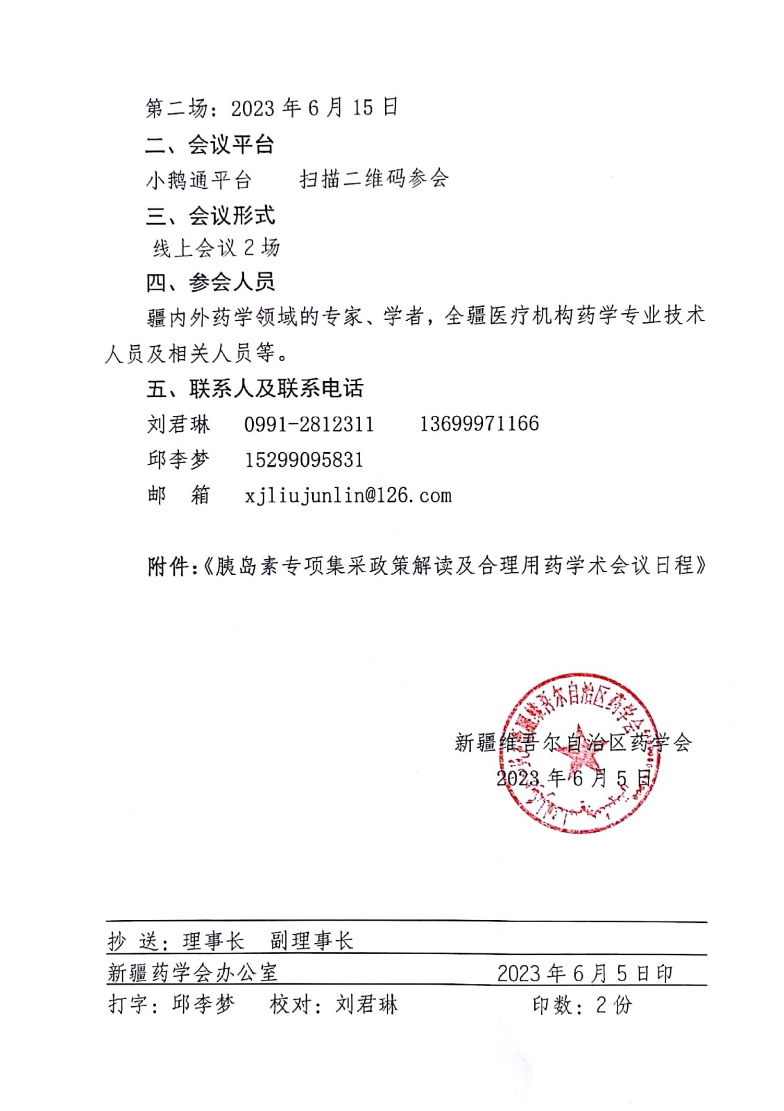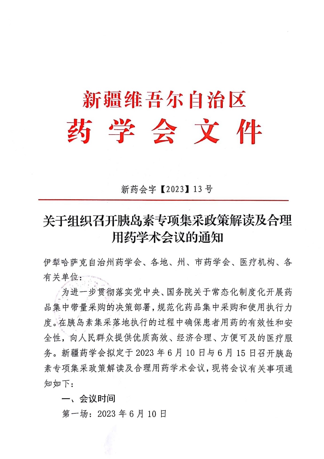 关于组织召开胰岛素专项集采政策解读及合理用药学术会议的通知
