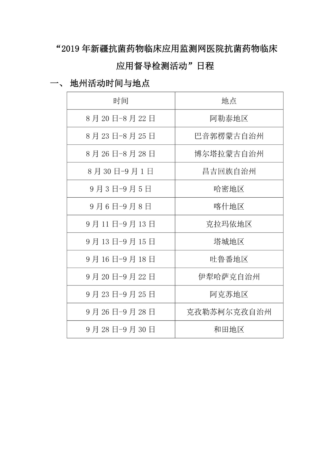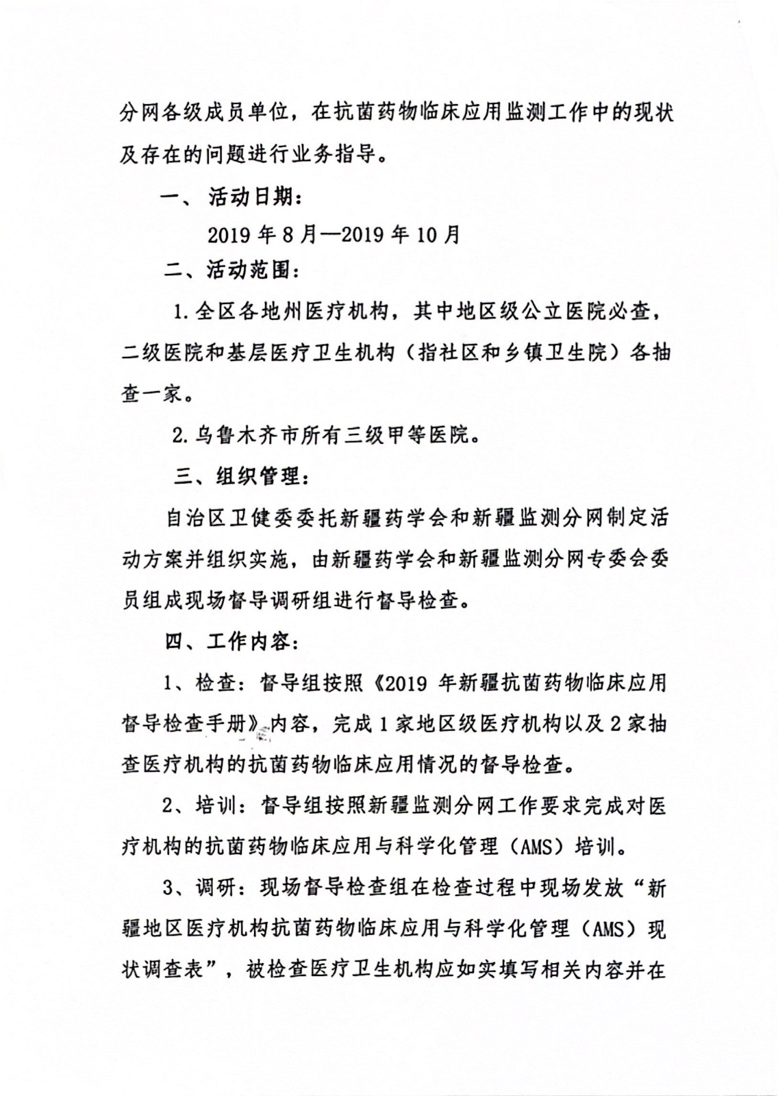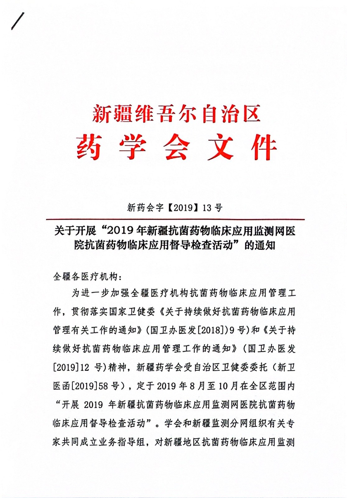 关于开展“2019年新疆抗菌药物临床应用监测网医院抗菌药物临床应用督导检查活动”的通知