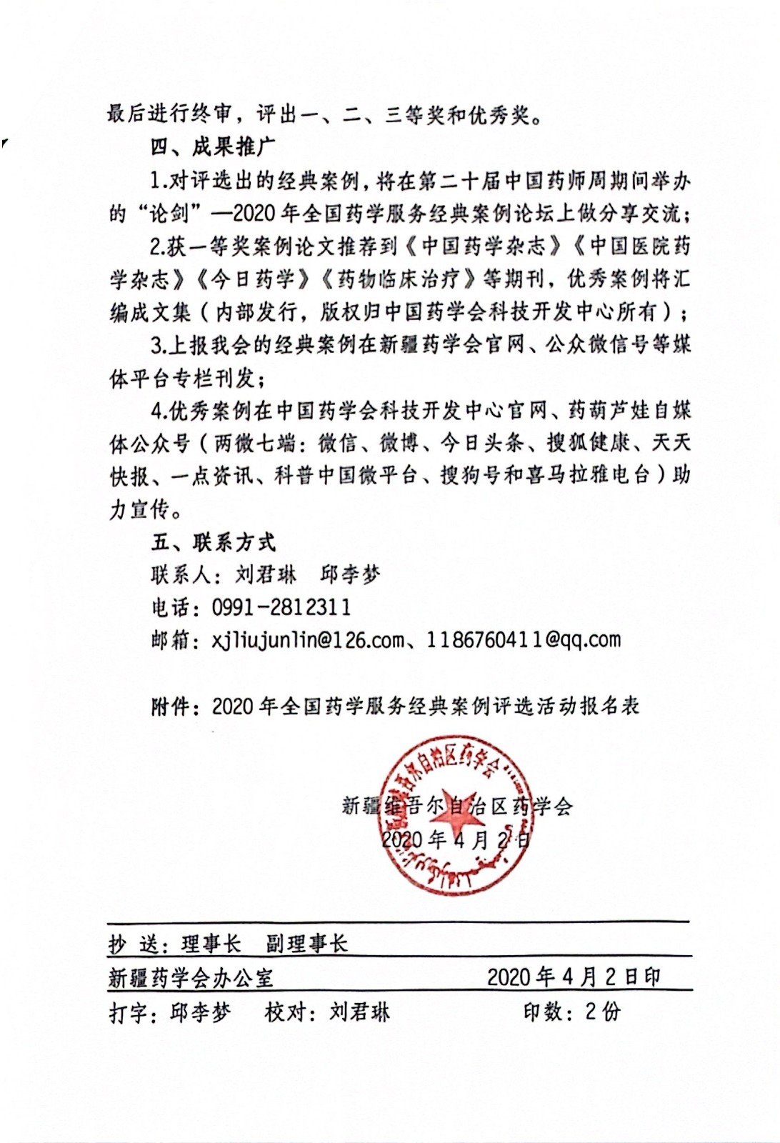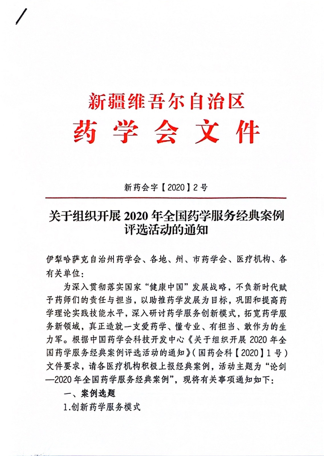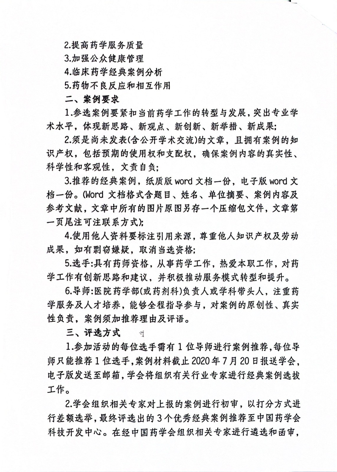 关于组织开展2020年全国药学服务经典案例评选活动的通知