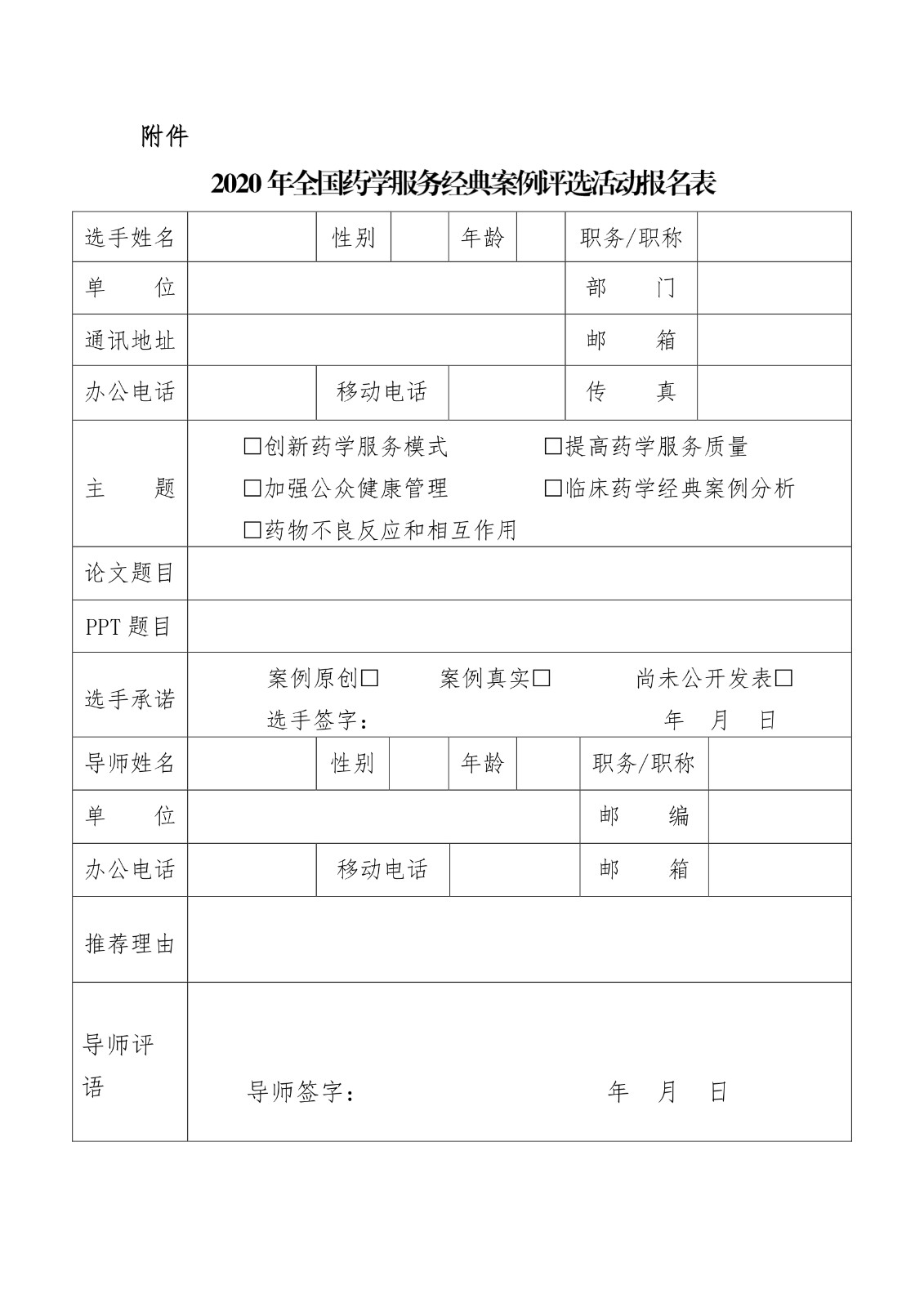 附件:2020年全国药学服务经典案例活动报名表.docx