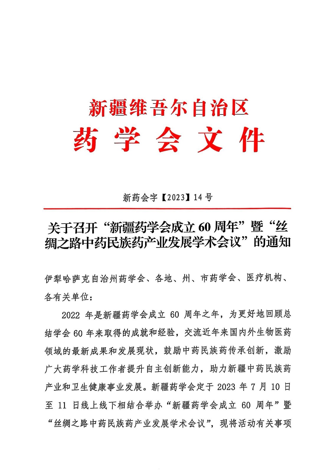 关于召开“新疆药学会成立60周年”暨“丝绸之路中药民族药产业发展学术会议”的通知