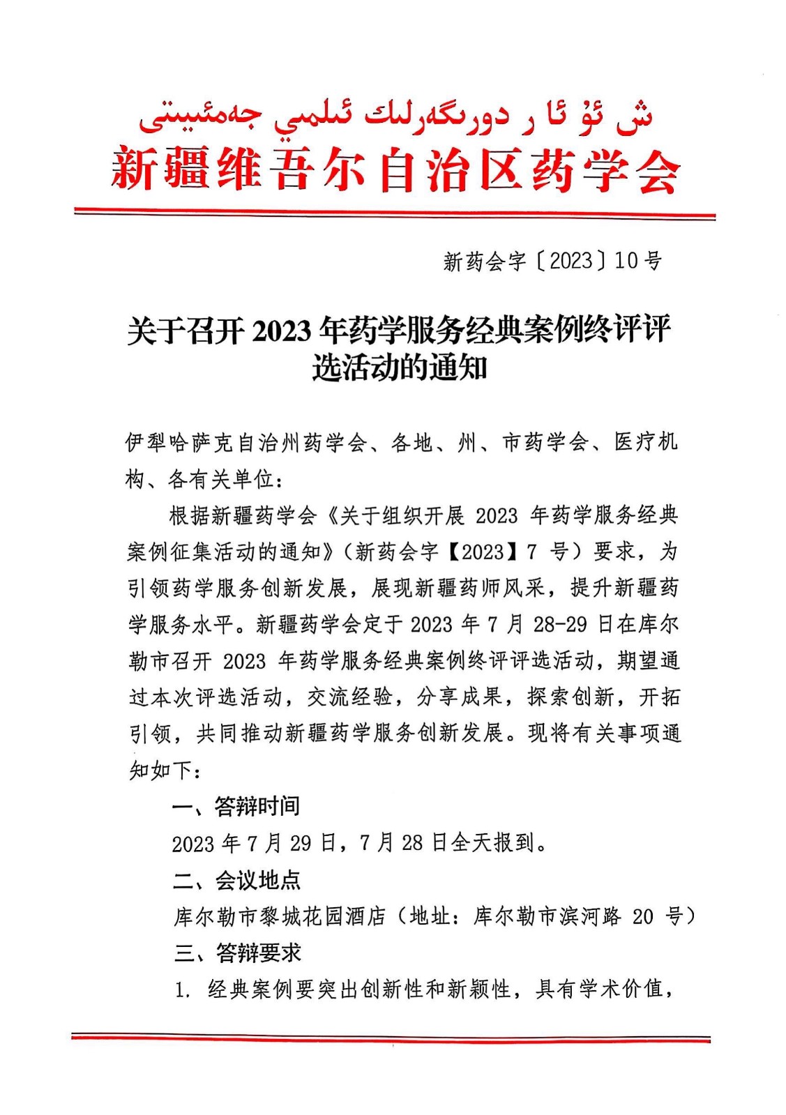 关于召开2023年药学服务经典案例终评评选活动的通知