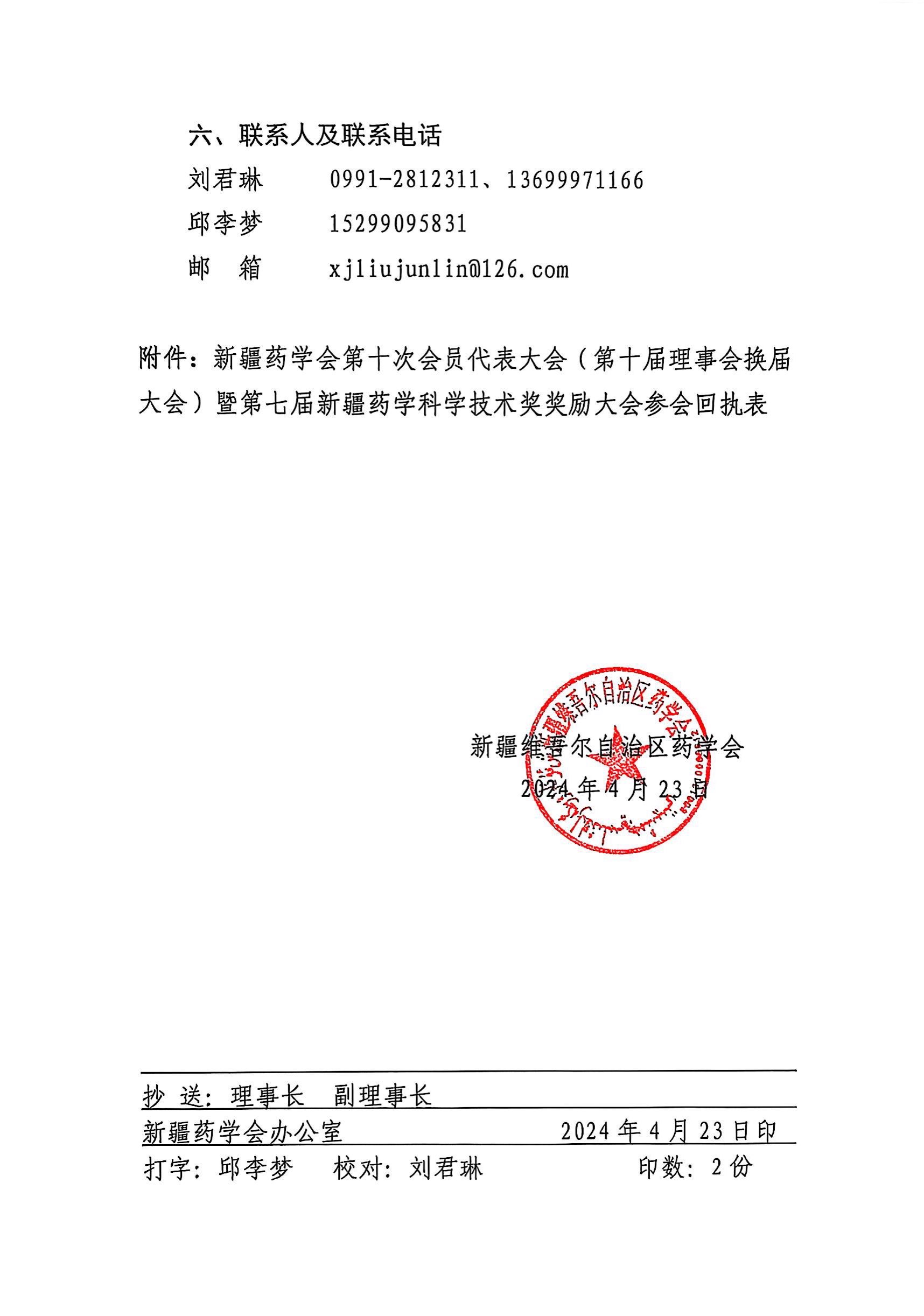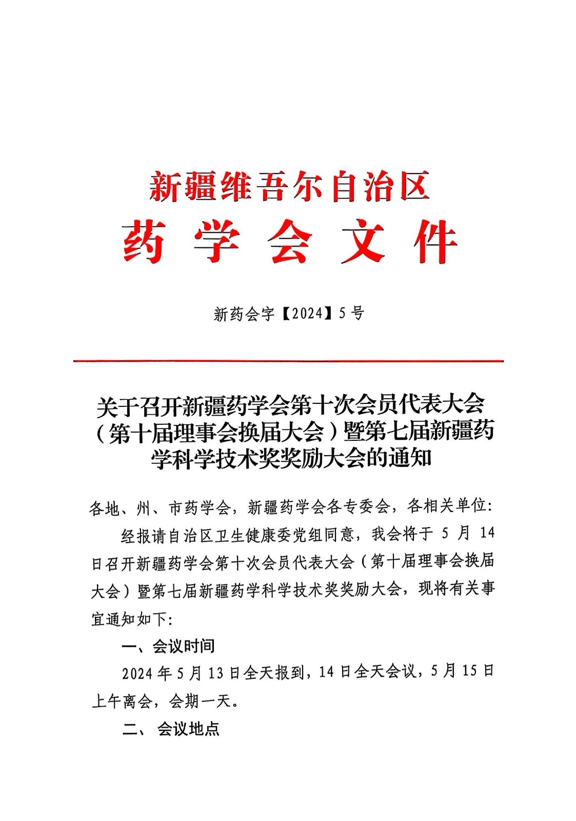 关于召开新疆药学会第十次会员代表大会(第十届理事会换届大会)暨第七届新疆药学科学技术奖奖励大会的通知