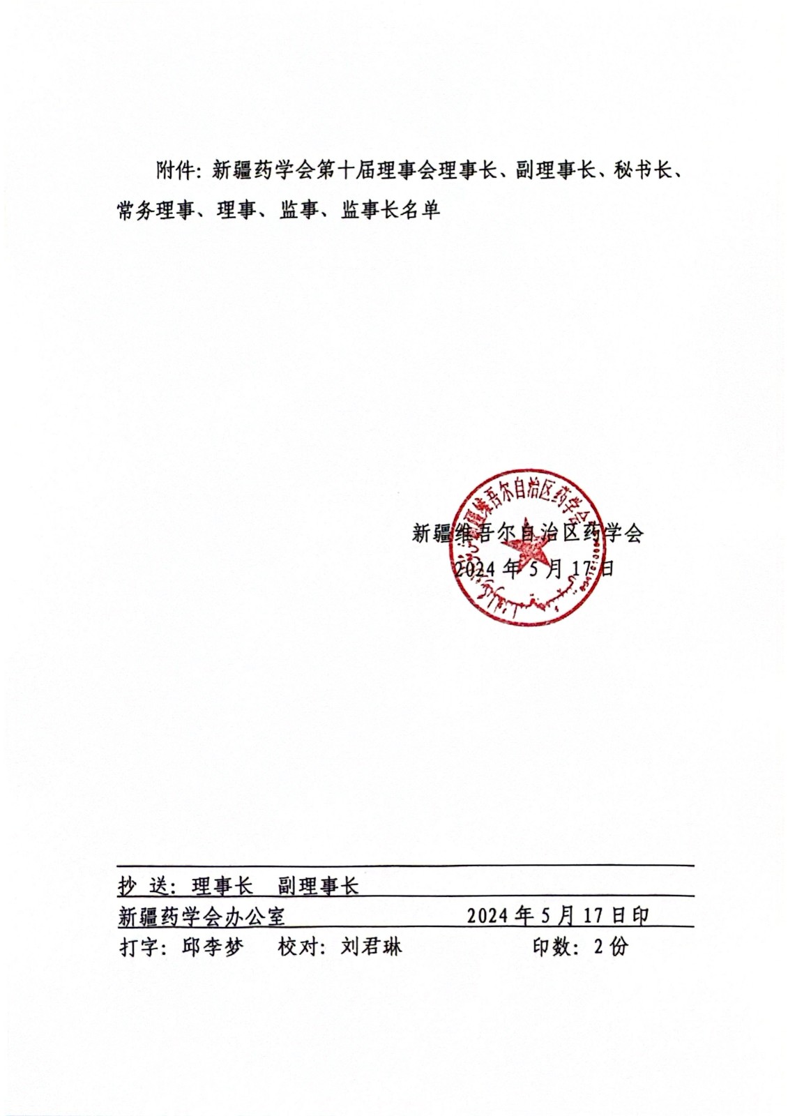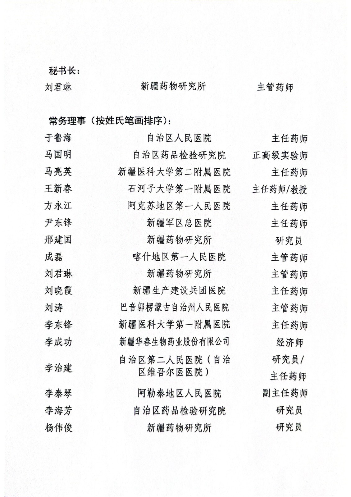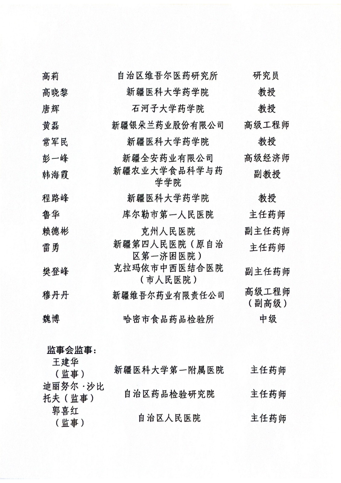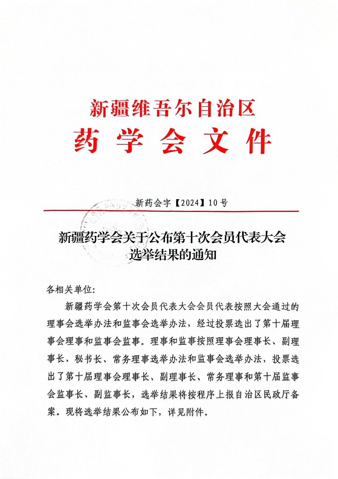 新疆药学会关于公布第十次会员代表大会选举结果的通知