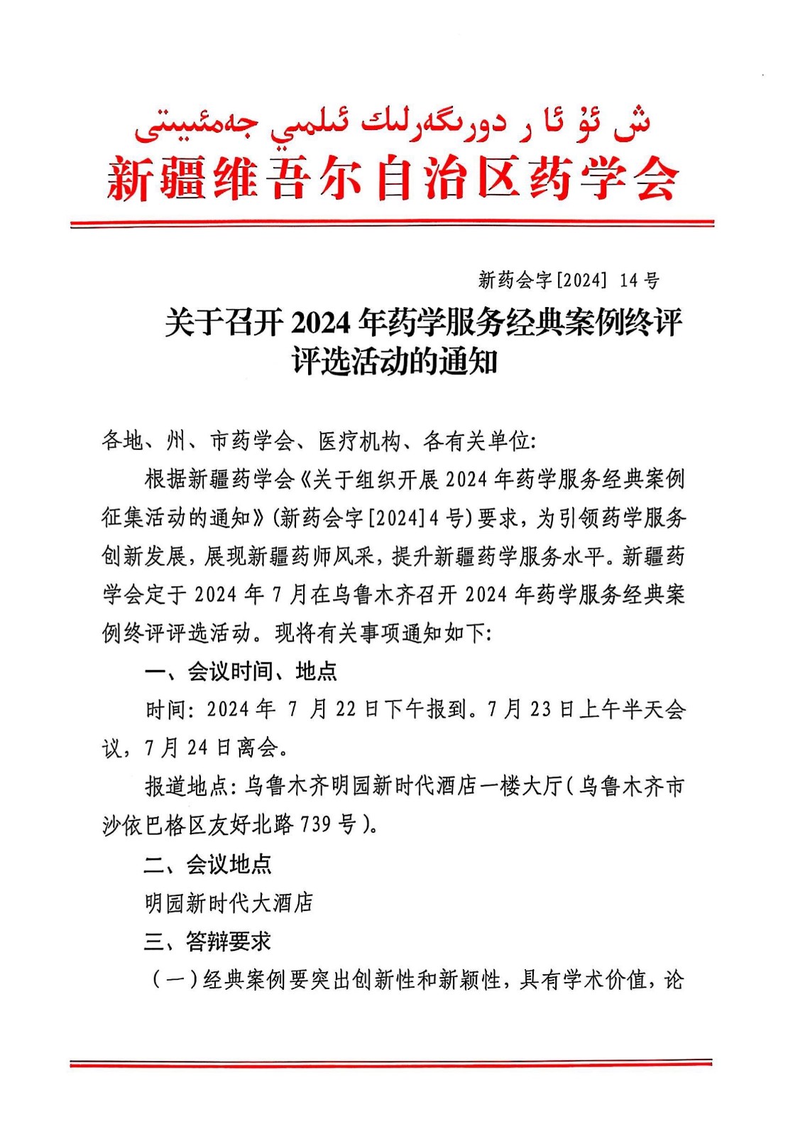 关于召开2024年药学服务经典案例终评评选活动的通知