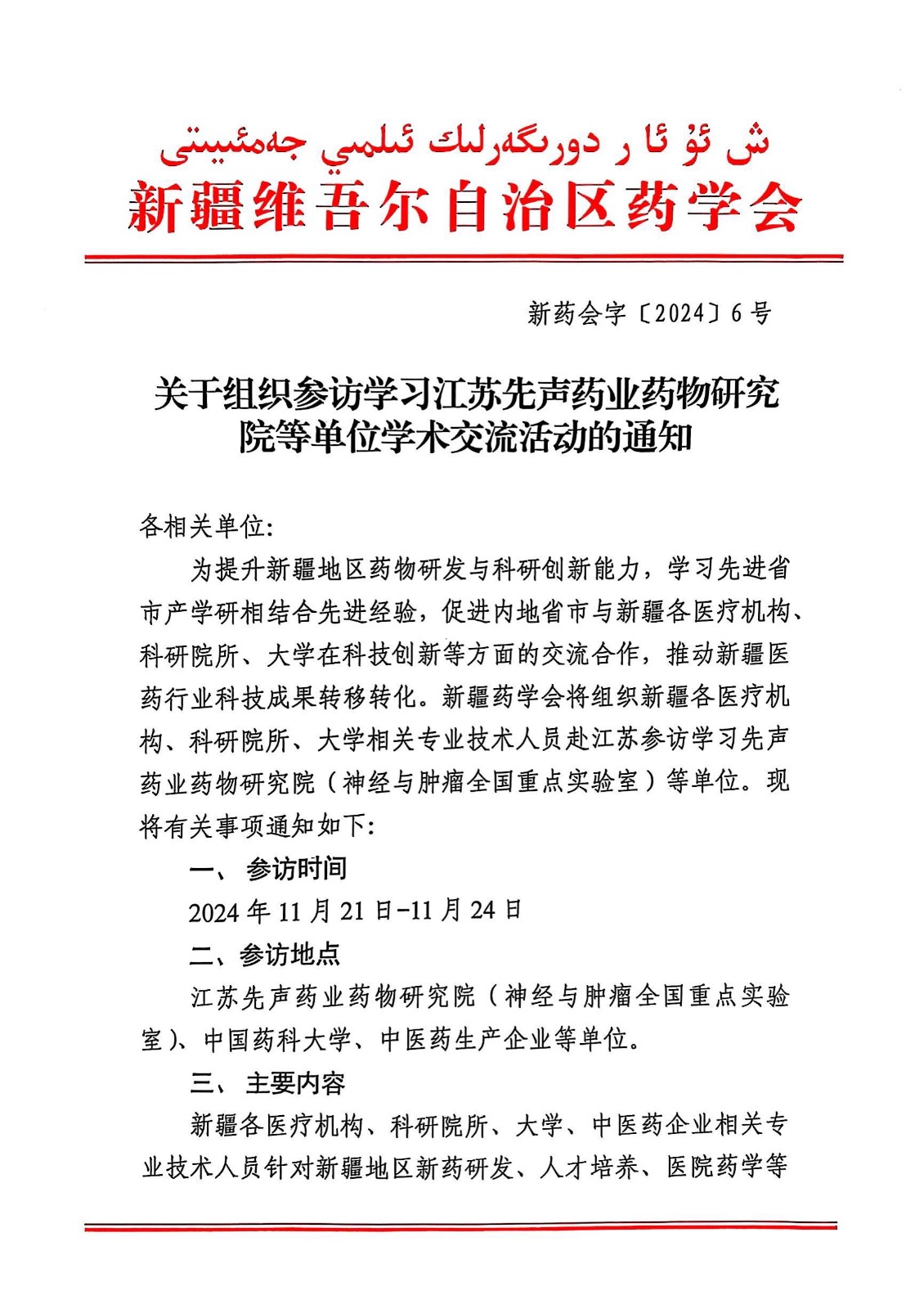 关于组织参访学习江苏先声药业药物研究院等单位学术交流活动的通知