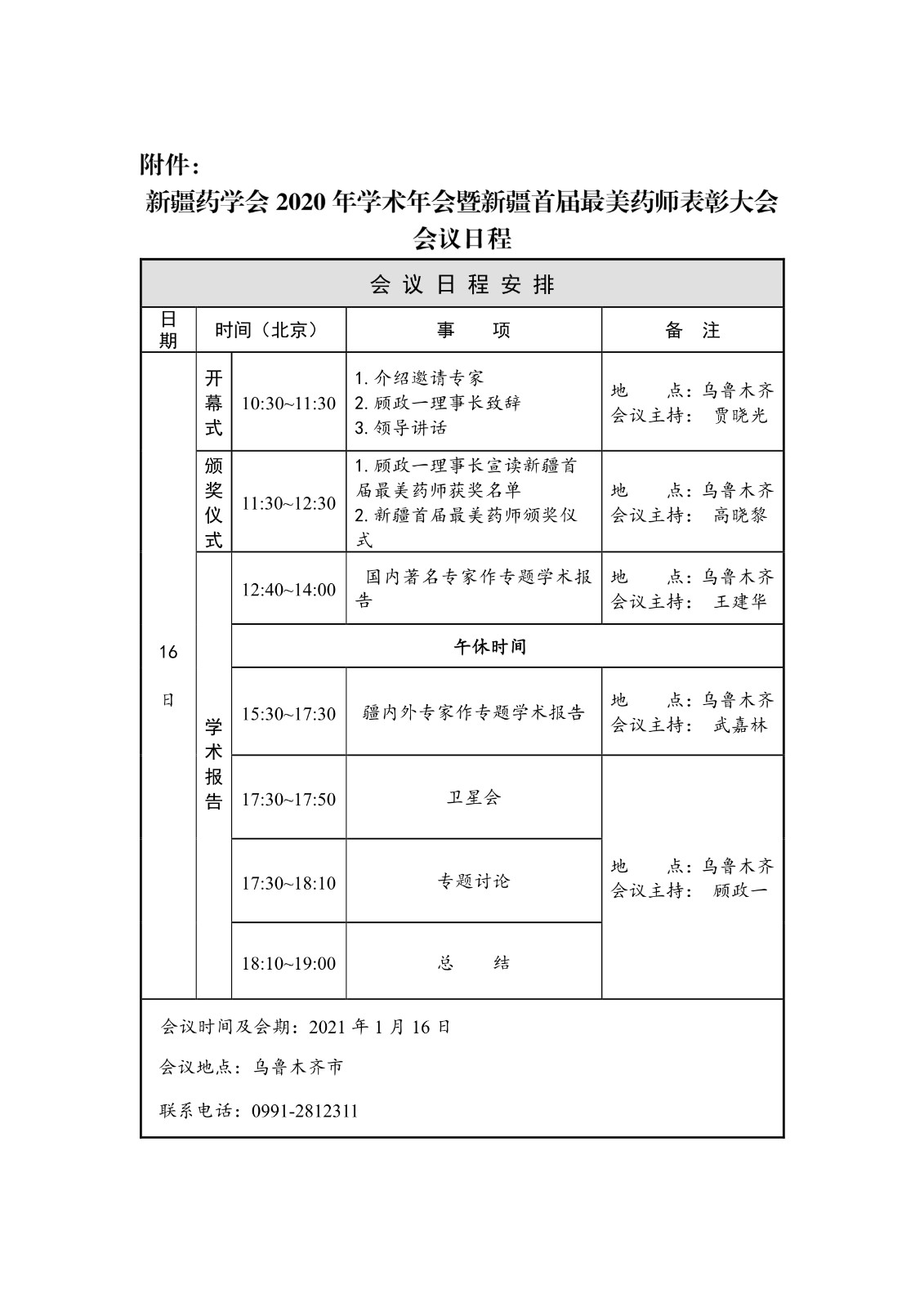 关于召开“新疆药学会2020年学术年会暨新疆首届最美药师表彰大会”的通知(第二轮)